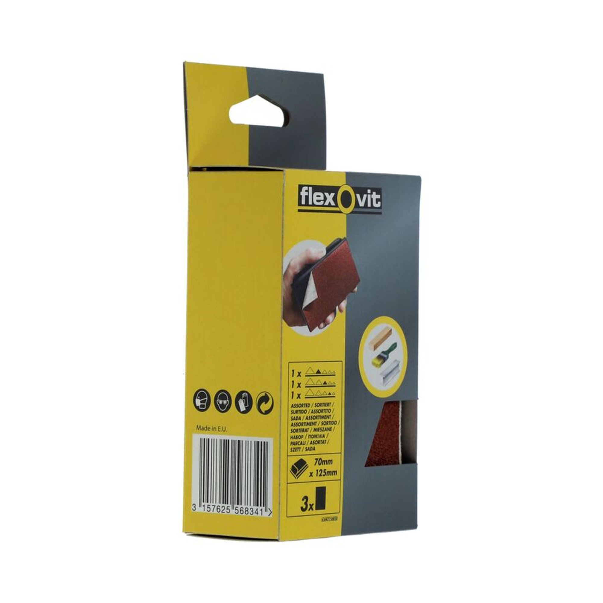 Ergänzen Sie Ihr Schleifmittel-Sortiment mit dem praktischen 125x70mm Schleifblock von Flexovit, optimal für diverse Materialien wie Holz, Metalle und Kunststoffe.,