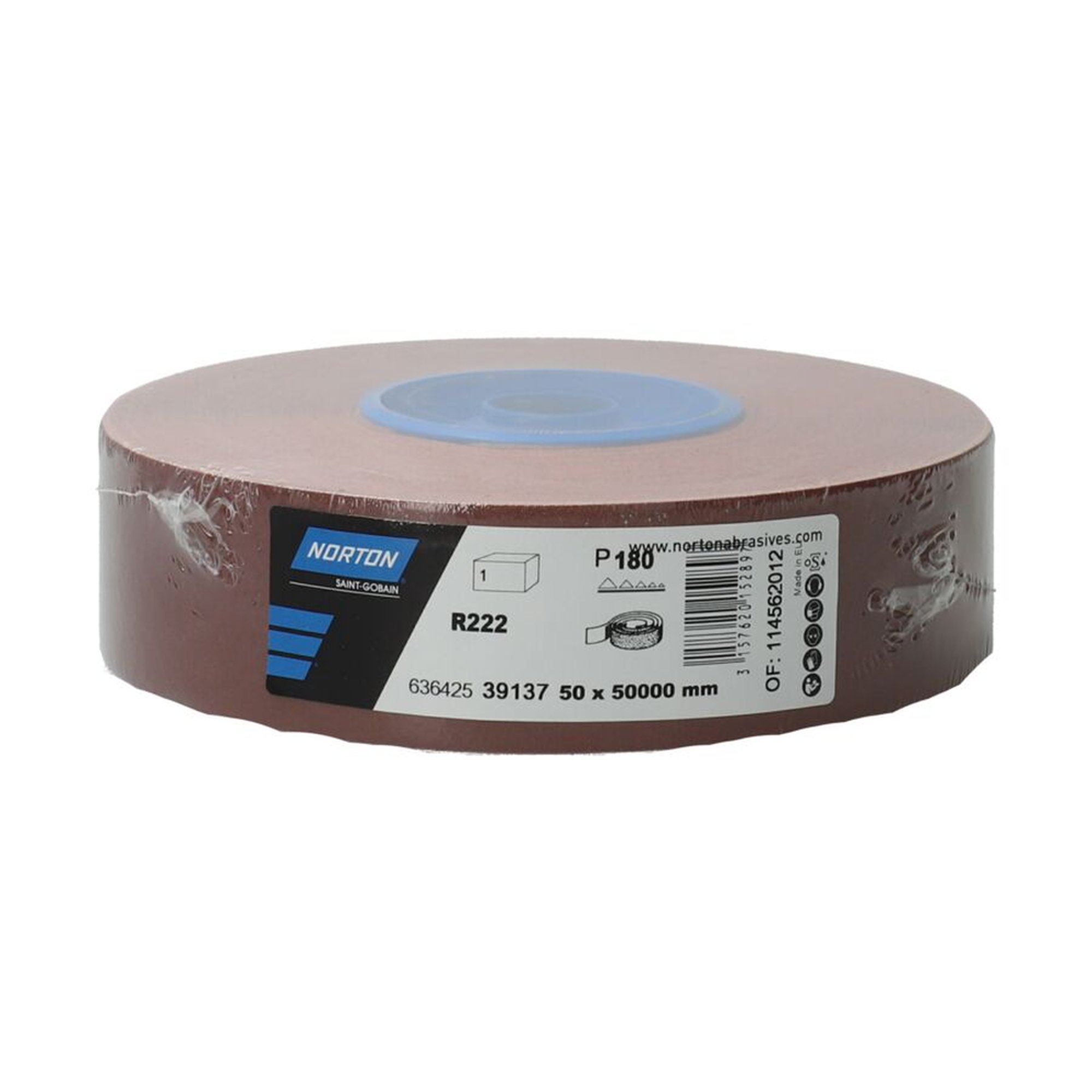 5 x Norton Schleifrolle Schleifpapier 50mm x 50m R222 180 für effizientes Schleifen