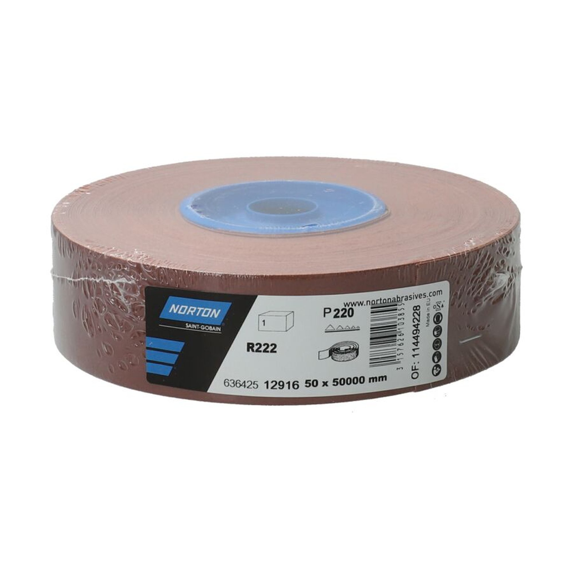 5 x Norton Schleifrolle Schleifpapier 50mm x 50m R222 220 für effizientes Schleifen