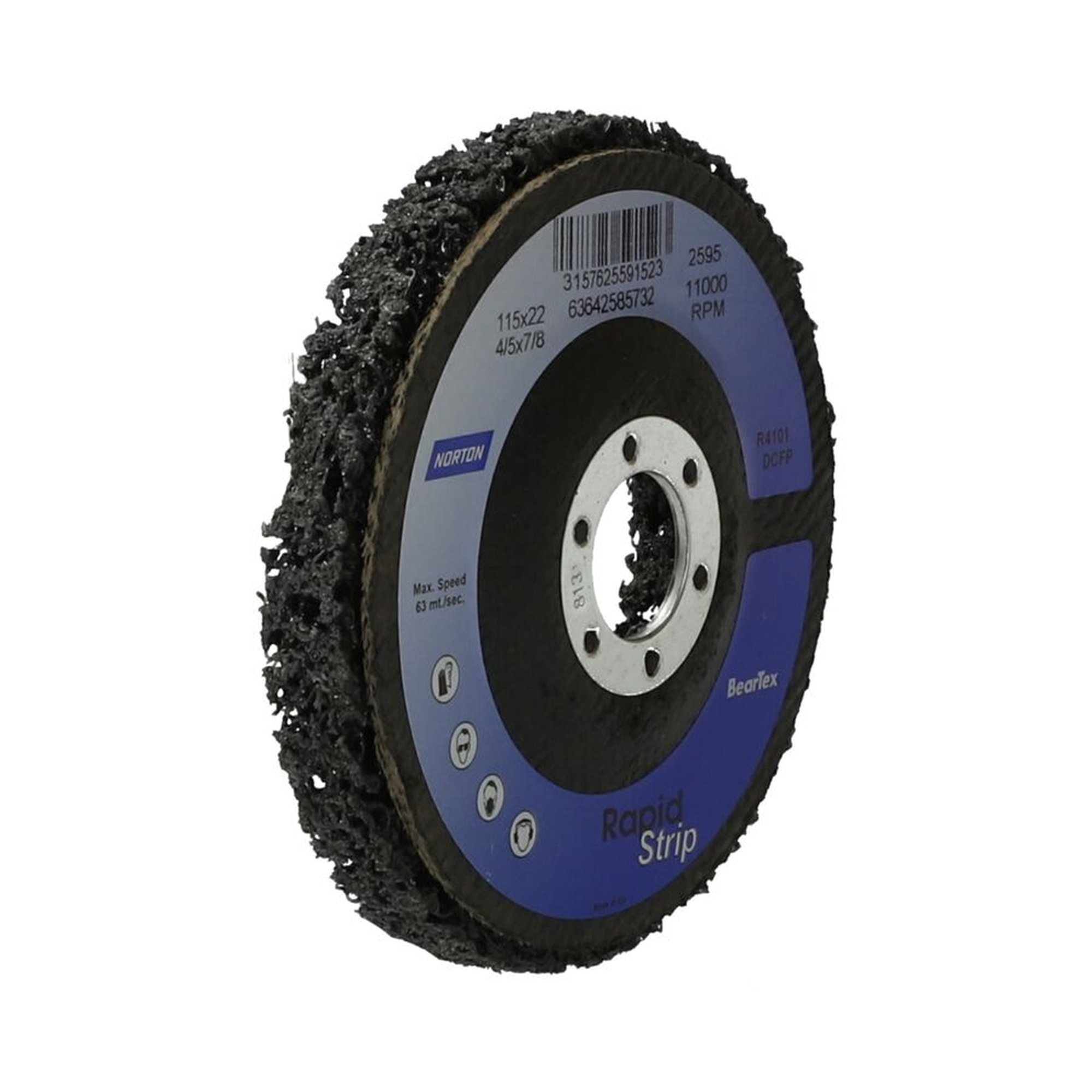Die Reinigungsscheiben Norton RAPID STRIP zeichnen sich durch ihre robuste Bauweise und hohe Effizienz aus. Mit einem Durchmesser von 115 mm und einer Bohrung von 22 mm sind diese Scheiben ideal für den professionellen Einsatz. Die schwarzen Reinigungsscheiben bestehen aus einer dicken, starken Synthetikfiber und sind mit extra grobem Siliziumkarbid-Schleifkorn bestückt. Diese Kombination ermöglicht eine schnelle Materialabnahme ohne Verstopfung der Scheibe.