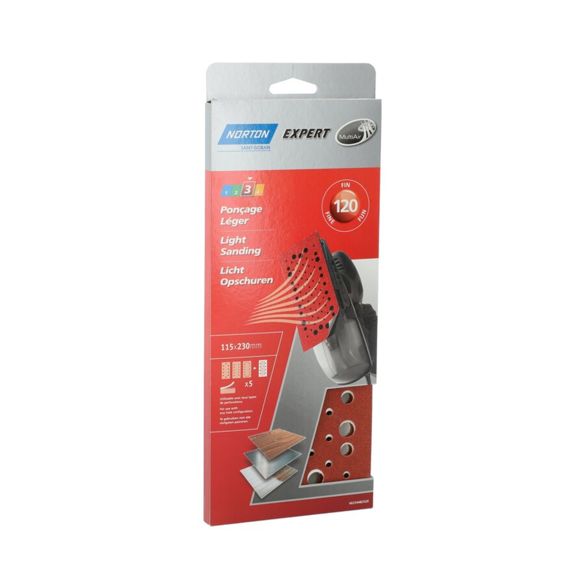 5 x Norton Schleifstreifen Klett 115x230mm K120 Multi-Air Lochung EXPERT