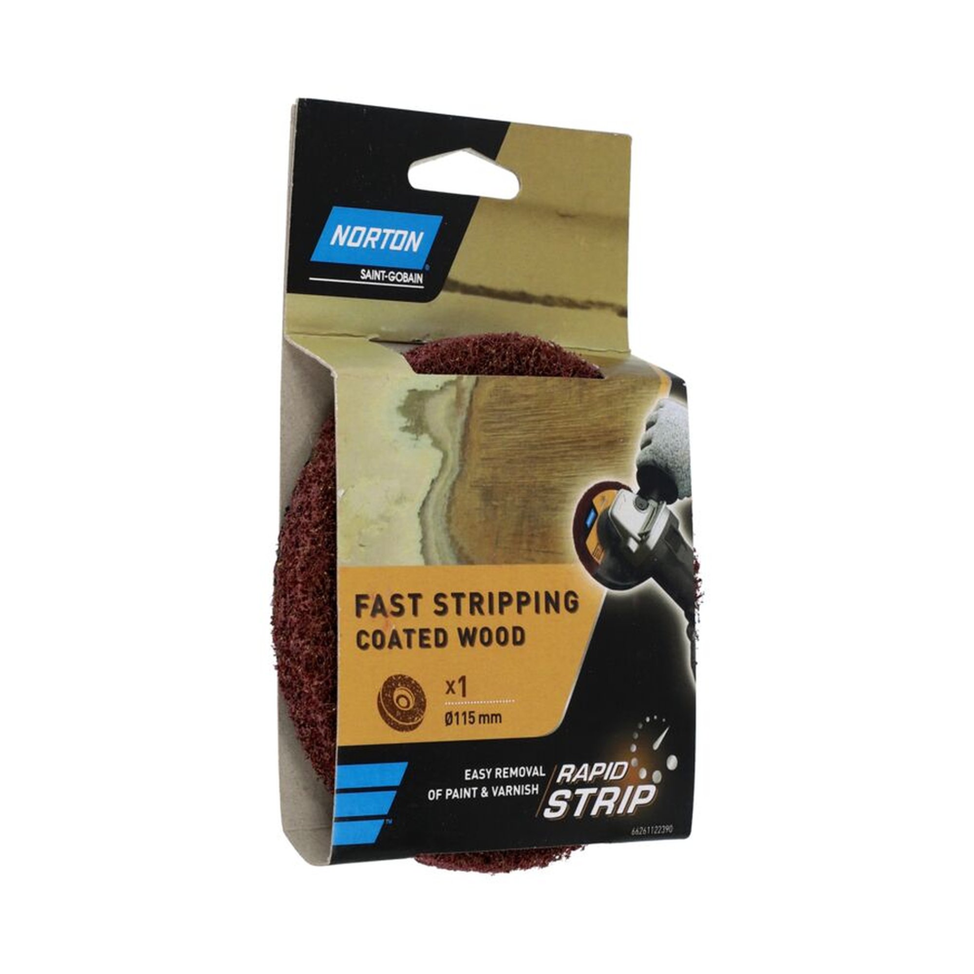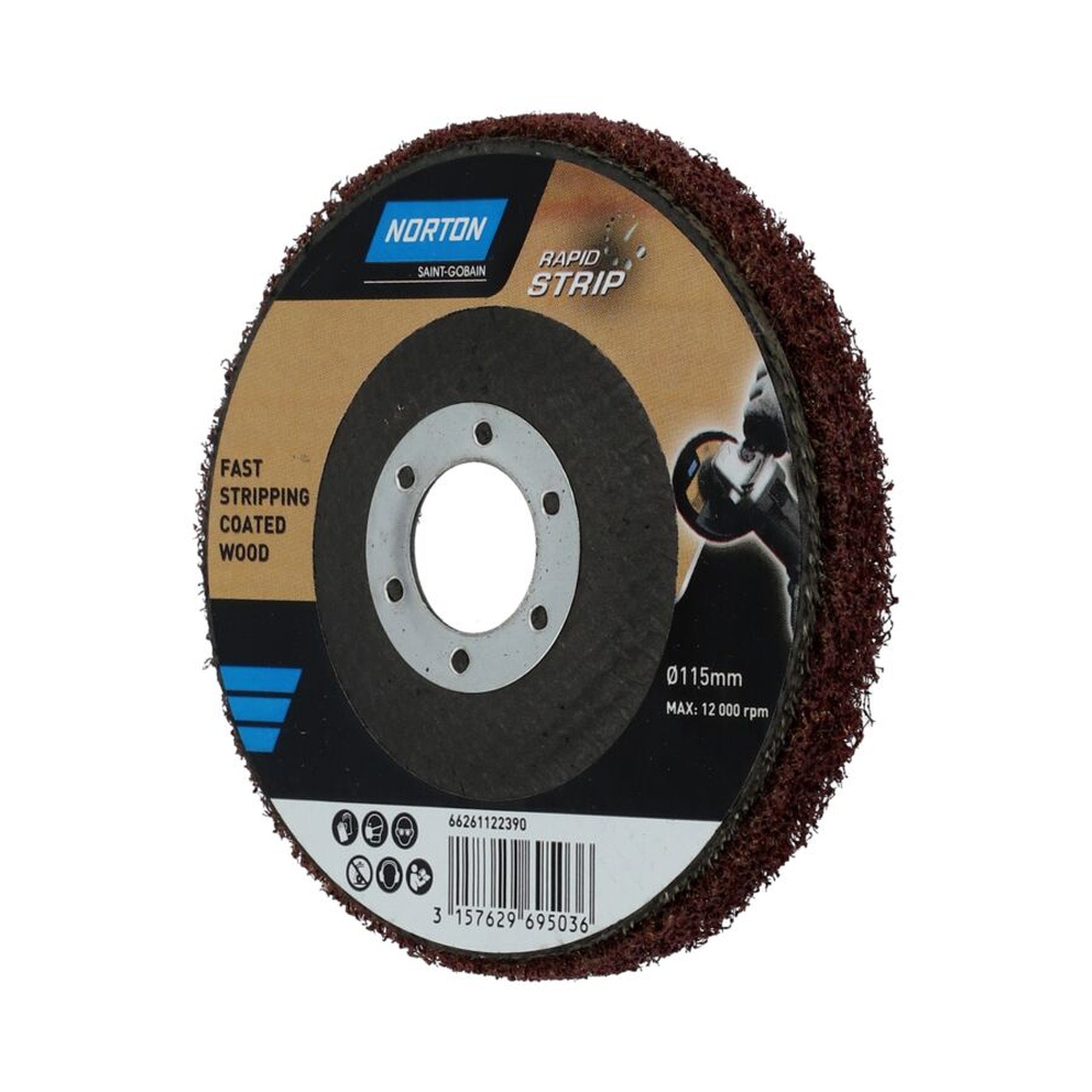 Die Norton WOOD Vliesscheiben sind ein hochwertiges Werkzeug für die effiziente Bearbeitung von Holzoberflächen. Diese Scheiben, mit einer Größe von 115x22mm, zeichnen sich durch ihre robuste Konstruktion aus starken Nylonfasern aus, die mit hochwertigem Aluminiumschleifkorn imprägniert sind. Die Fasern ermöglichen einen sehr schnellen Materialabtrag, ideal für das Entfernen von Farbe, Lack und anderen Beschichtungen von Holzmöbeln, egal ob im Innen- oder Außenbereich.