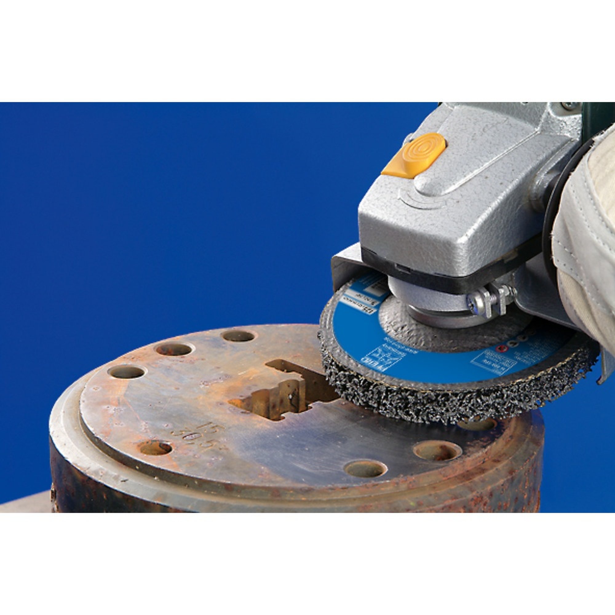 Das Reinigungsvlies ist auf einem Glasgewebetragteller verklebt. Dadurch sind POLICLEAN-Discs im Stirnschliff einsetzbar. Für grobe Reinigungsarbeiten wie z. B. Entfernen von Lack, Zunder, Anlauffarben, Rost und Klebstoffresten geeignet. POLICLEAN-PLUS-DISCS weisen eine hohe Abtragsleistung bei sehr hoher Standzeit auf. Bevorzugt auf langsam laufenden Winkelschleifern einsetzen. Für beste Leistung bei einer empfohlenen Schnittgeschwindigkeit von 30-35 m/s einsetzen.