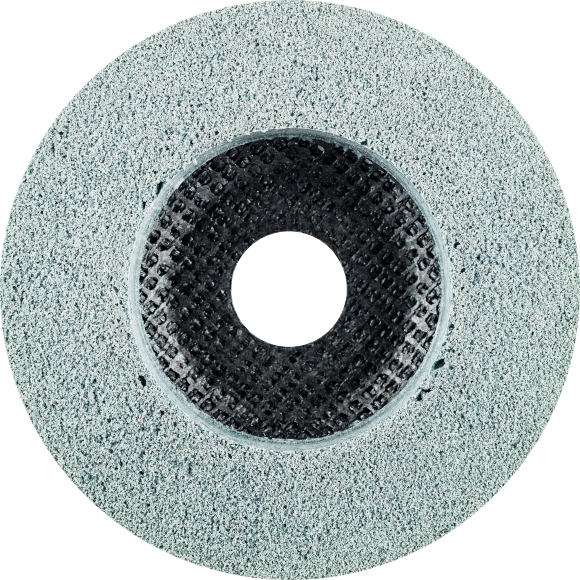 Zum Feinschleifen großer Flächen im Stirnschliff. Bevorzugt auf langsam laufenden Winkelschleifern einsetzen.