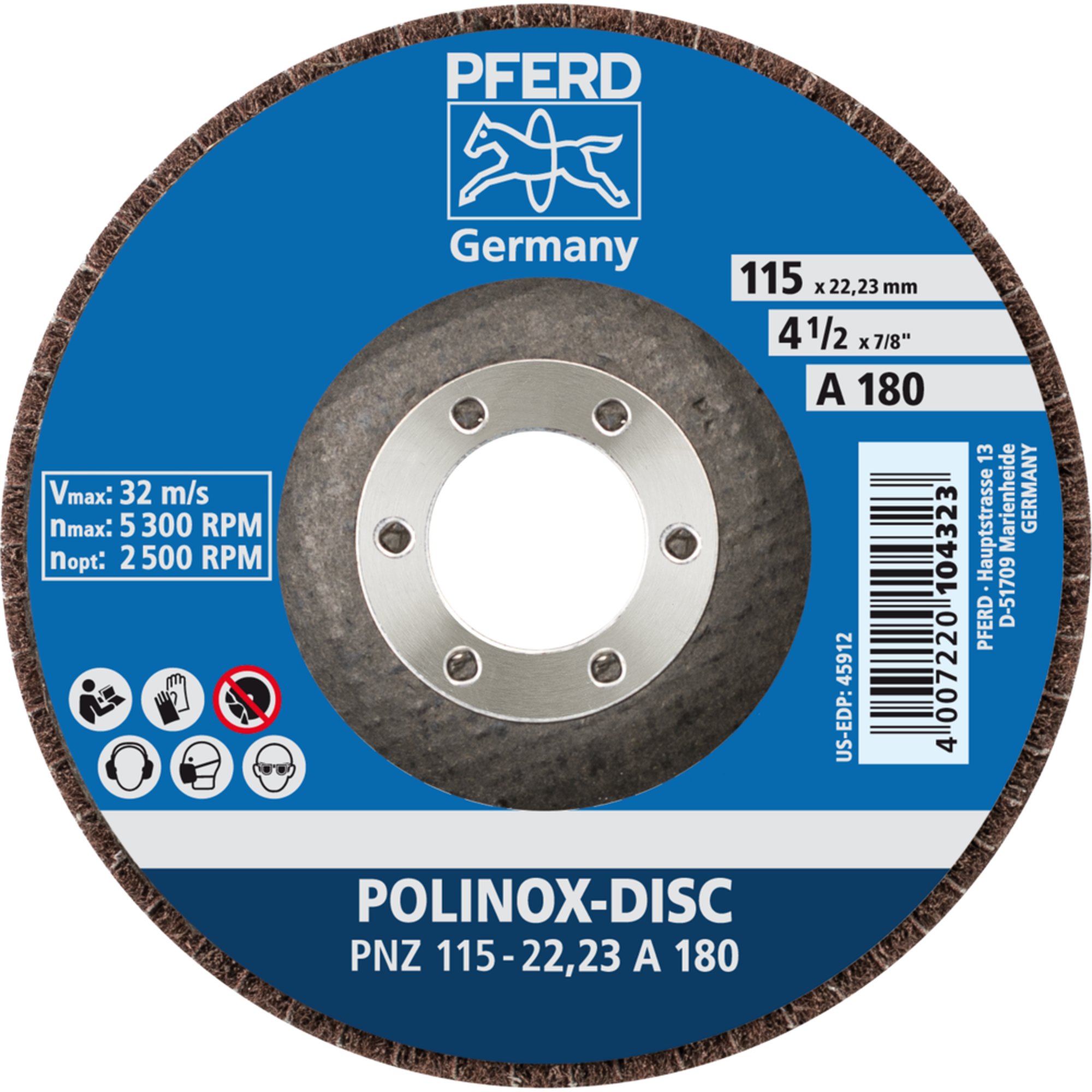 Besonderheiten: Die PFERD POLINOX-Schleifdisc PNZ 115-22,23 A 180 ist ein hochwertiges Werkzeug, das speziell für die Bearbeitung großer Flächen entwickelt wurde