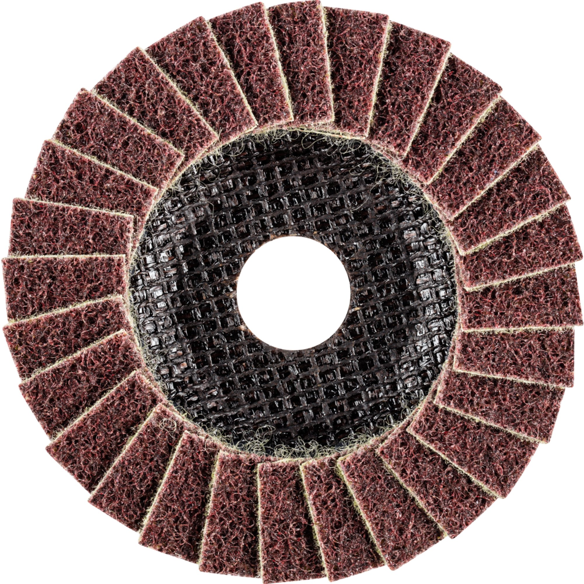 Besonderheiten: Eine hochwertige PFERD POLIVLIES-Fächerscheibe PVL 115 A 180 M, die sich ideal für die Bearbeitung von Metall, Edelstahl, Aluminium und Kunststoffen eignet. Mit hoher Abtragsleistung und langer Lebensdauer dank der hochwertigen POLIVLIES
