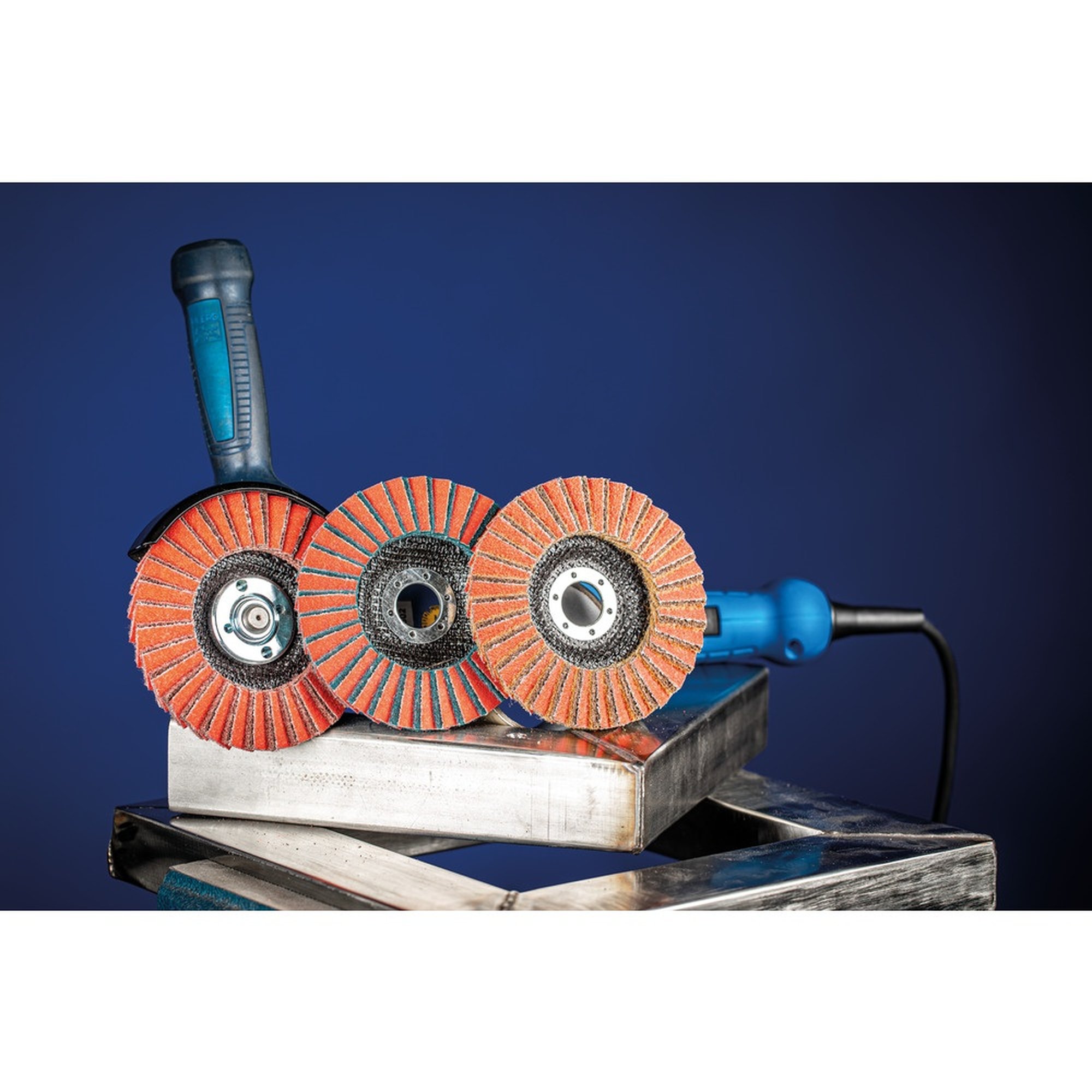 Die Scheibe ist besonders robust und langlebig. Sie eignet sich für den Einsatz auf Metall, Edelstahl, Aluminium und anderen harten Werkstoffen. Auch bei hohen Belastungen behält sie ihre Form und sorgt für ein gleichmäßiges Schleifbild.