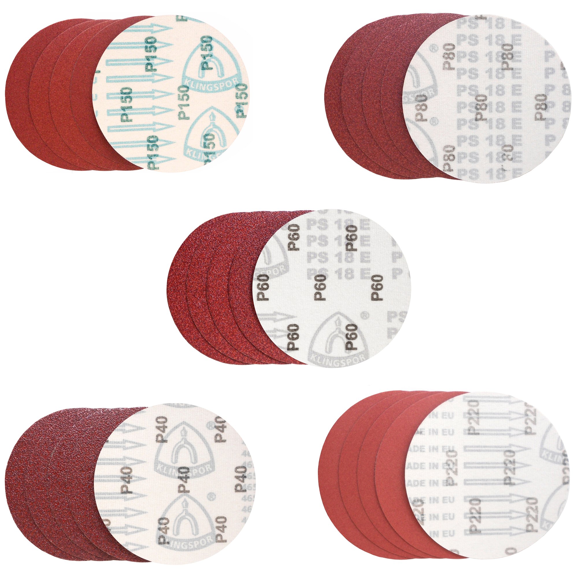 50-teiliges Set Klingspor Schleifscheibe PS18EK | 150 mm | Korn 40/80/120/180/240