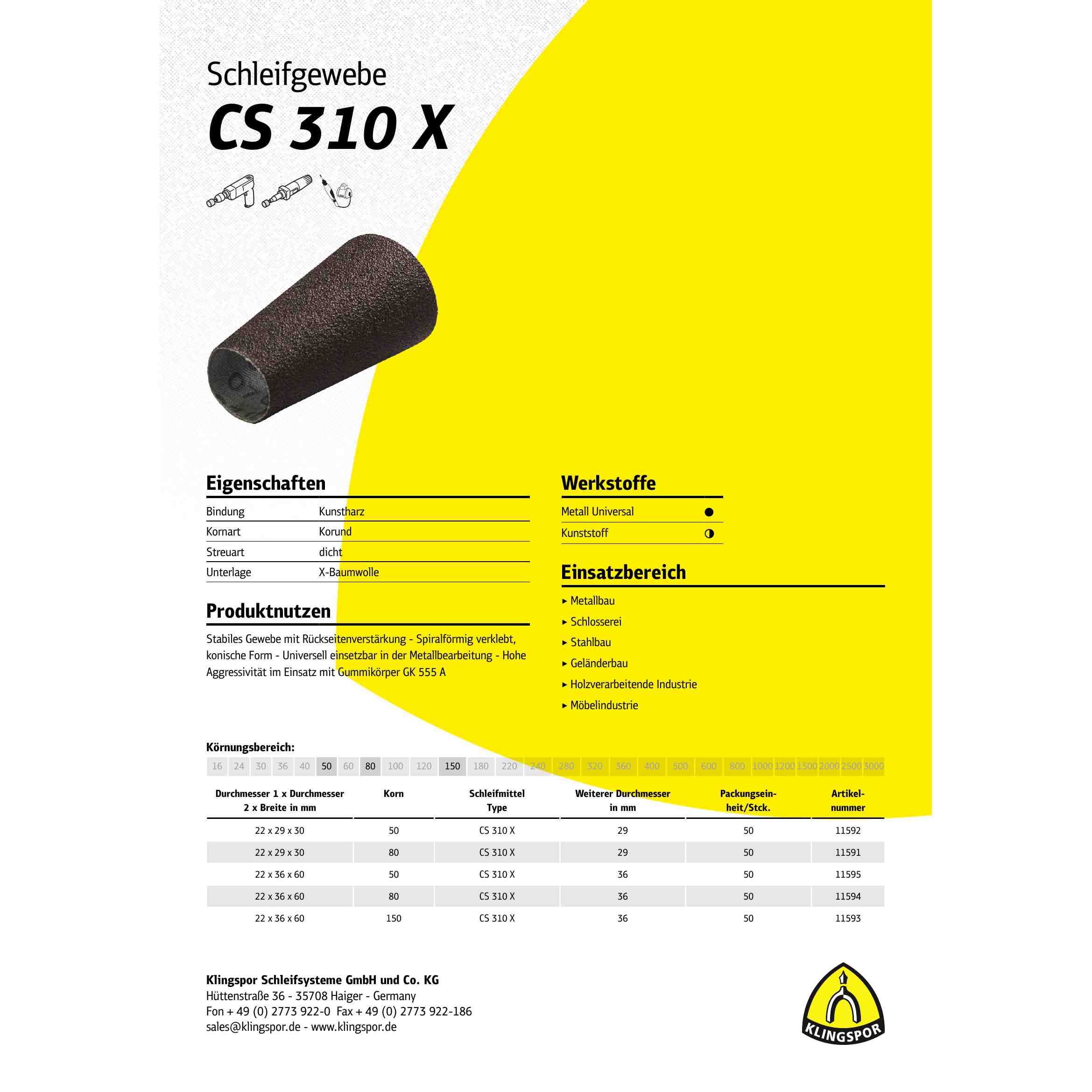 50 x Klingspor CS 310 X Schleifhülsen, 22 x 36 x 60 mm Korn 80
