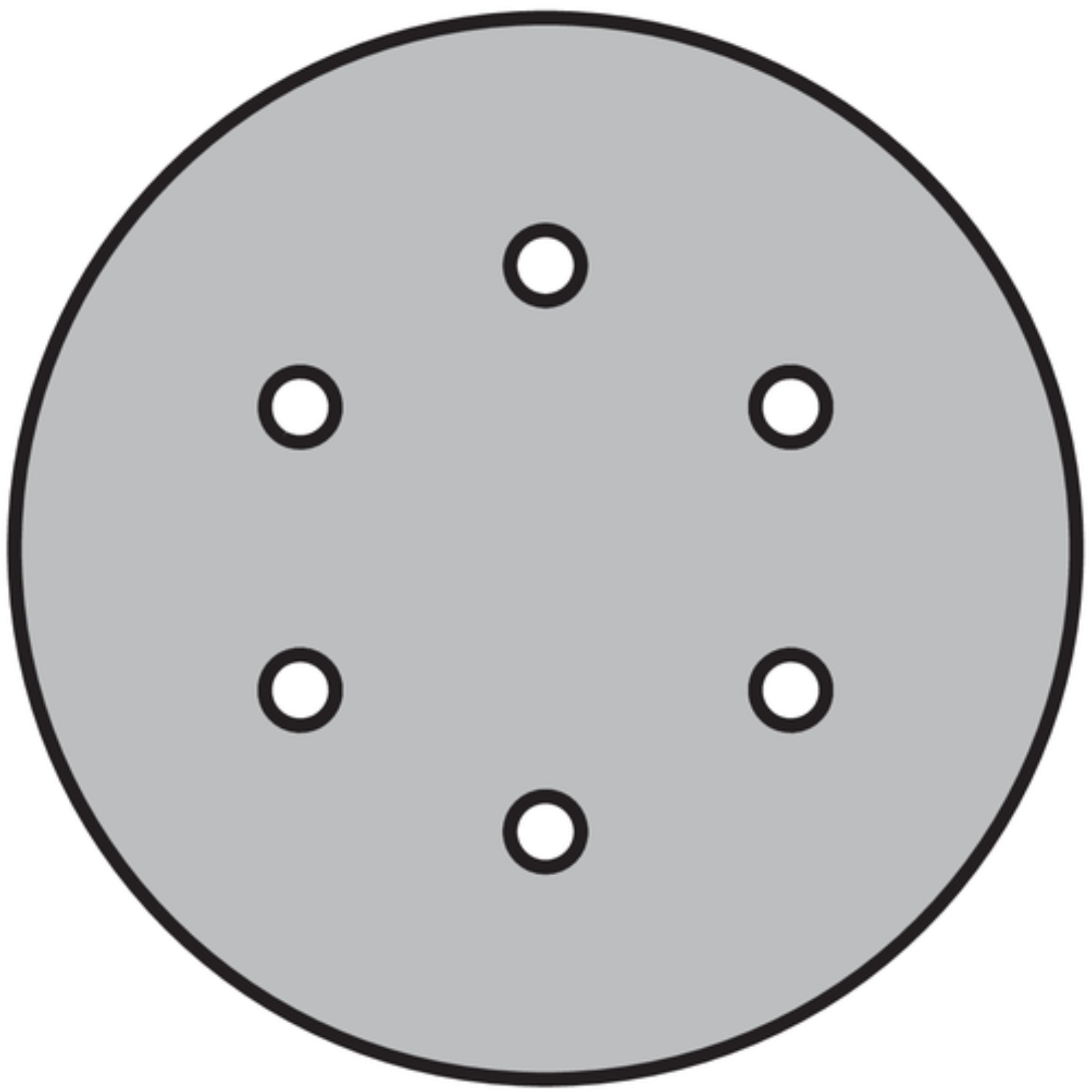 | Lochungsdetails | 6 Absauglöcher Ø 10 mm auf Lochkreis Ø 80 mm |
