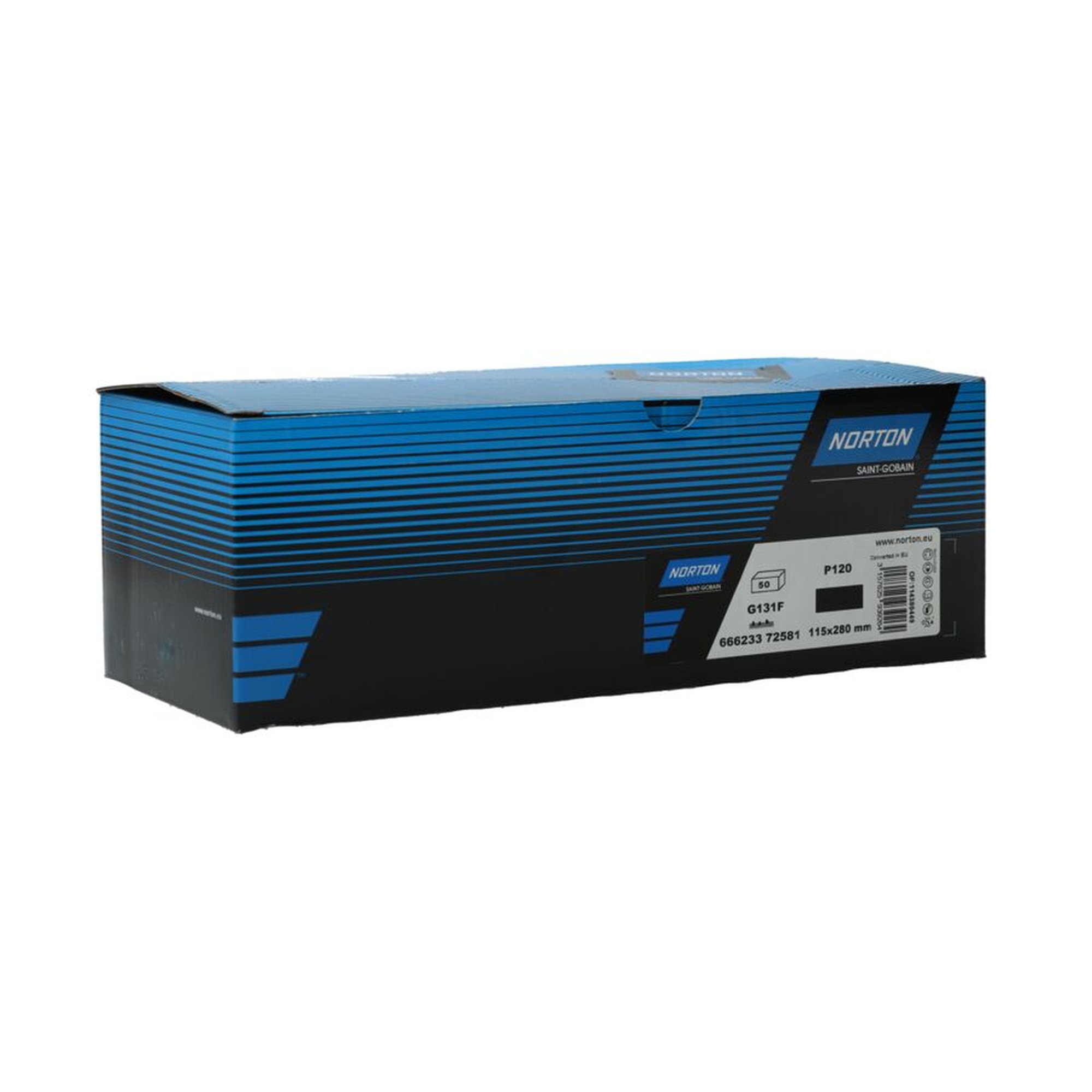 50 x Norton G131F Klettstreifen 115x280 ungelocht Korn 120 für Schleifarbeiten