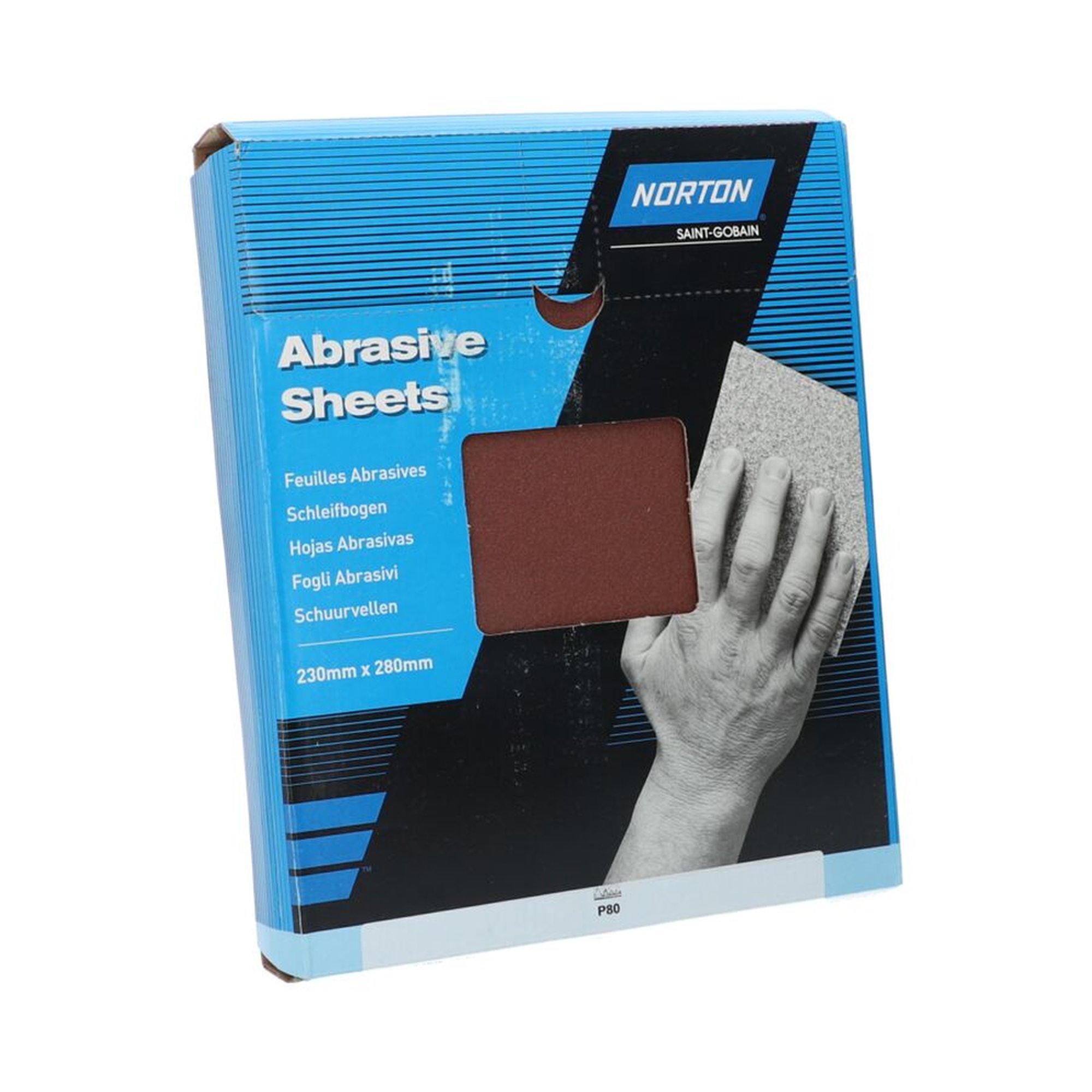50 x Norton Gewebe Schleifpapier 230x280 mm | R222 | Korn 80 | Schleifbogen