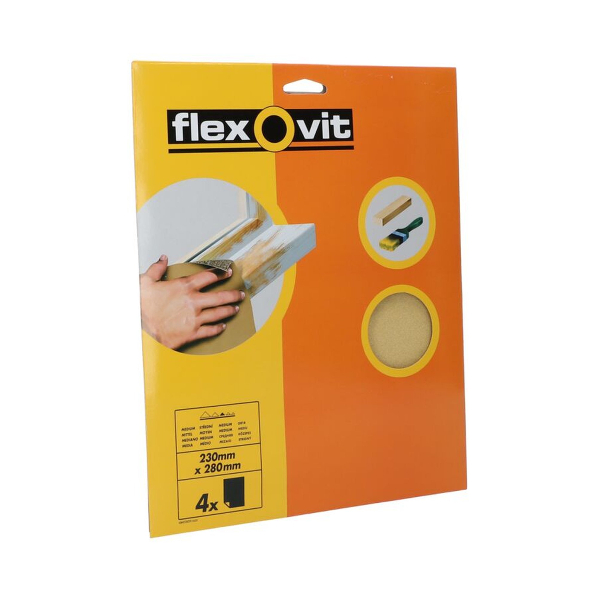 4 hochwirksame Schleifbögen von Flexovit, 230x280mm, ideal für DIY-Projekte und Holzbearbeitung.,