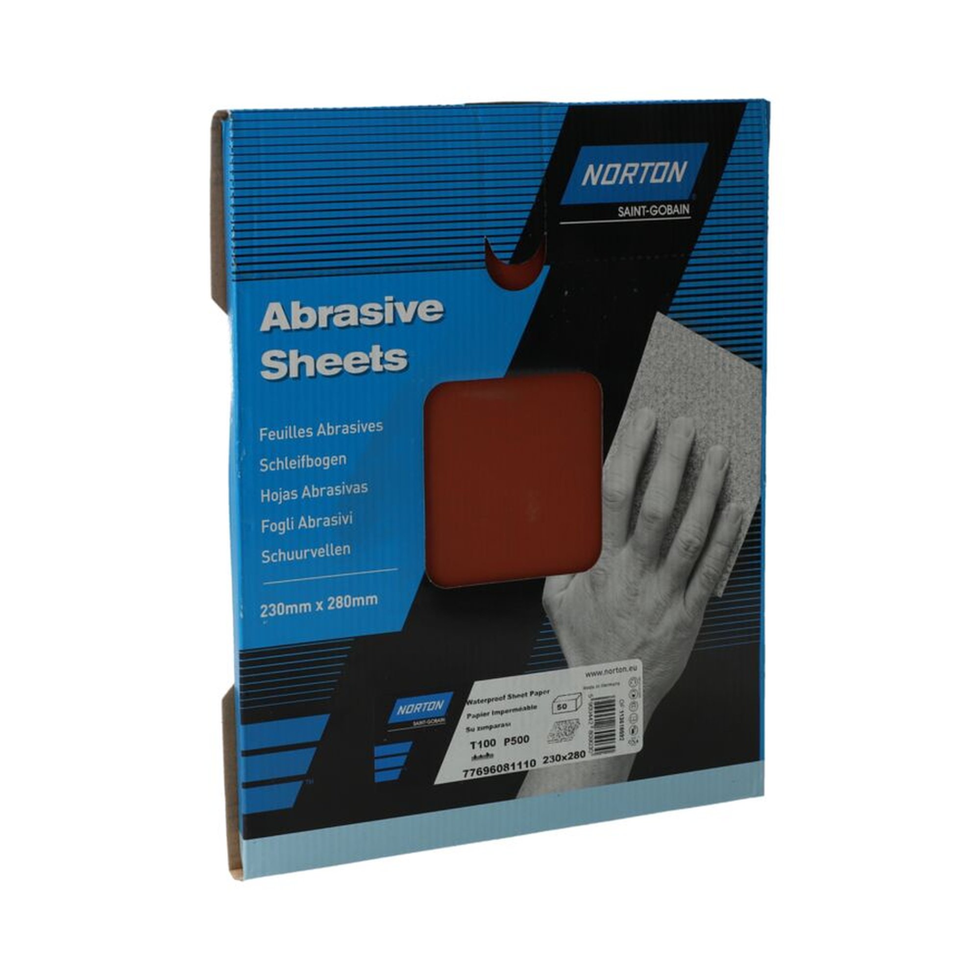 50 x Norton Schleifpapier Schleifbogen 230x280 mm | Korn 500 wasserfest | T100