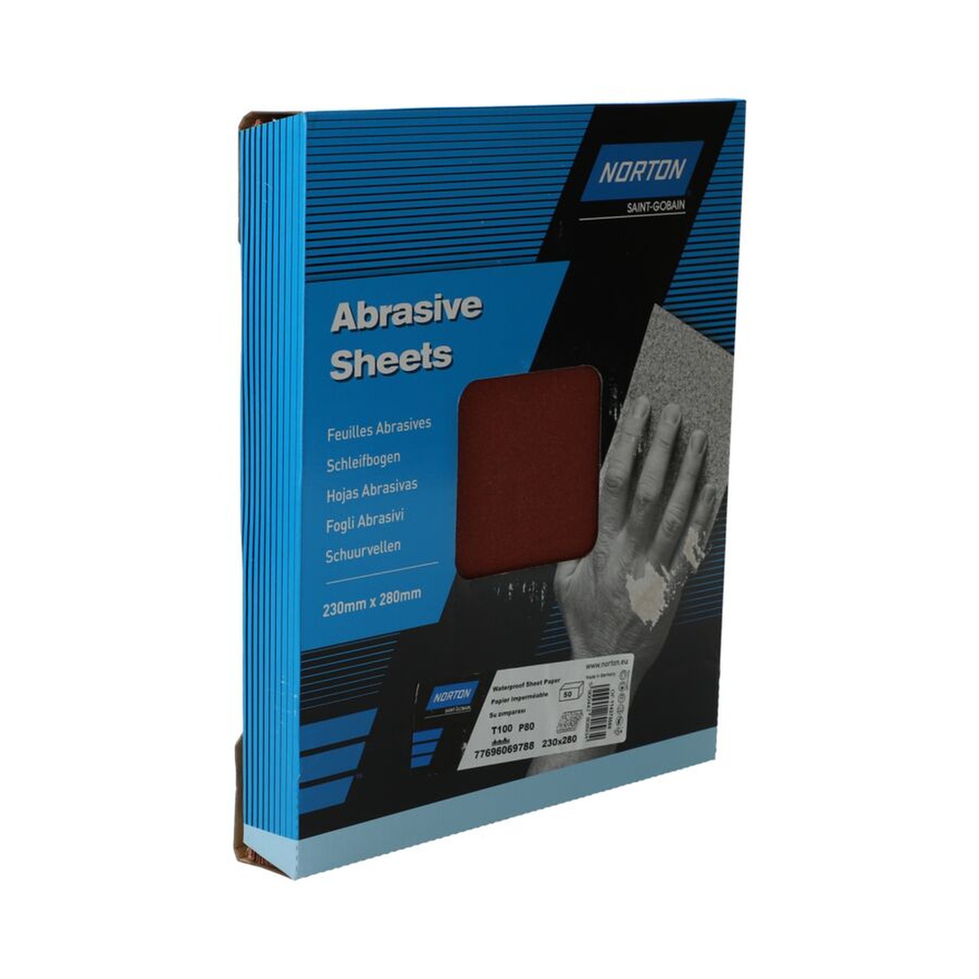 50 x Norton Schleifpapier Schleifbogen 230x280 mm Korn 80 wasserfest T100