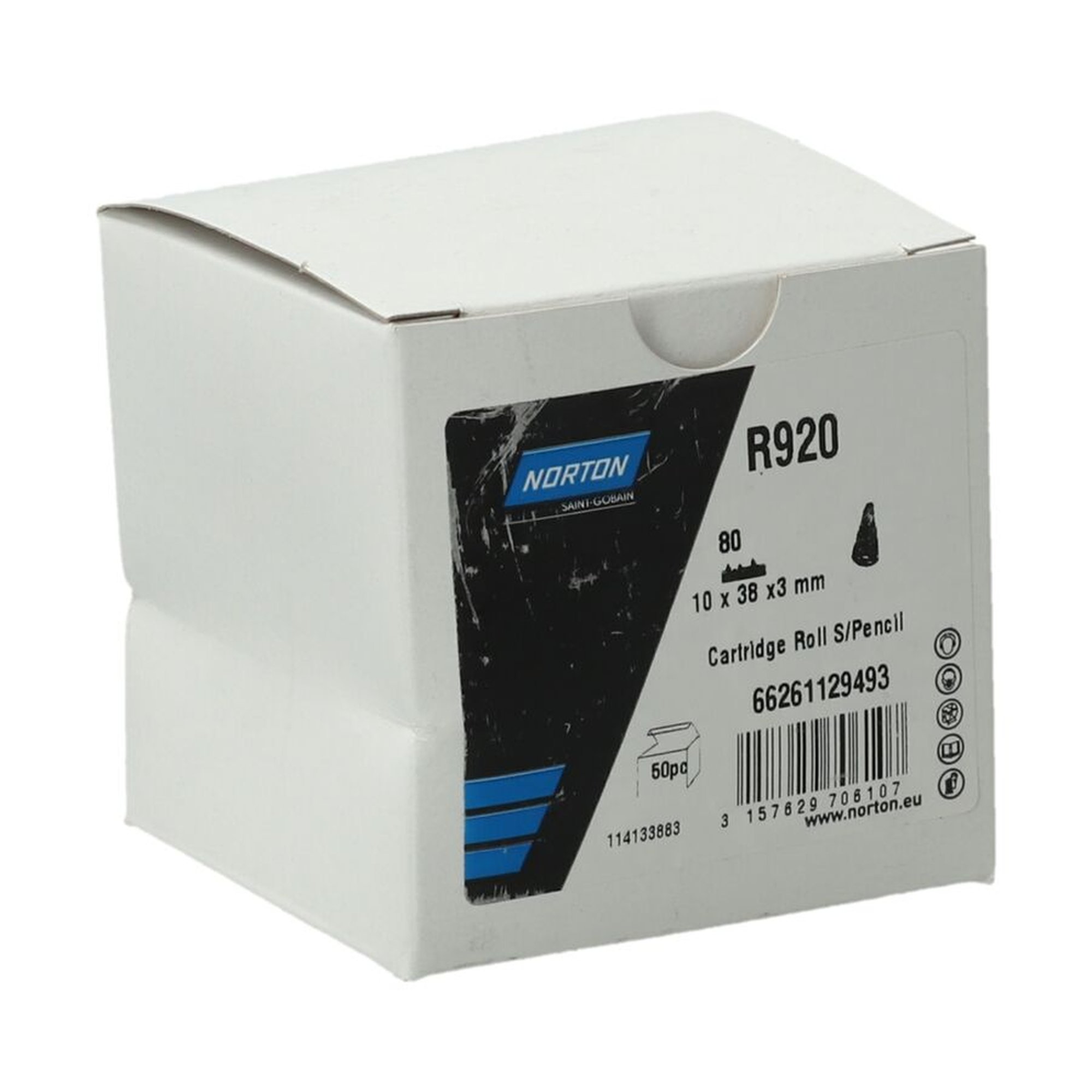 50 x Norton Schleifröllchen gewickelt 10x38x3 mm R920 Korn 80 CRM5 für präzises Schleifen