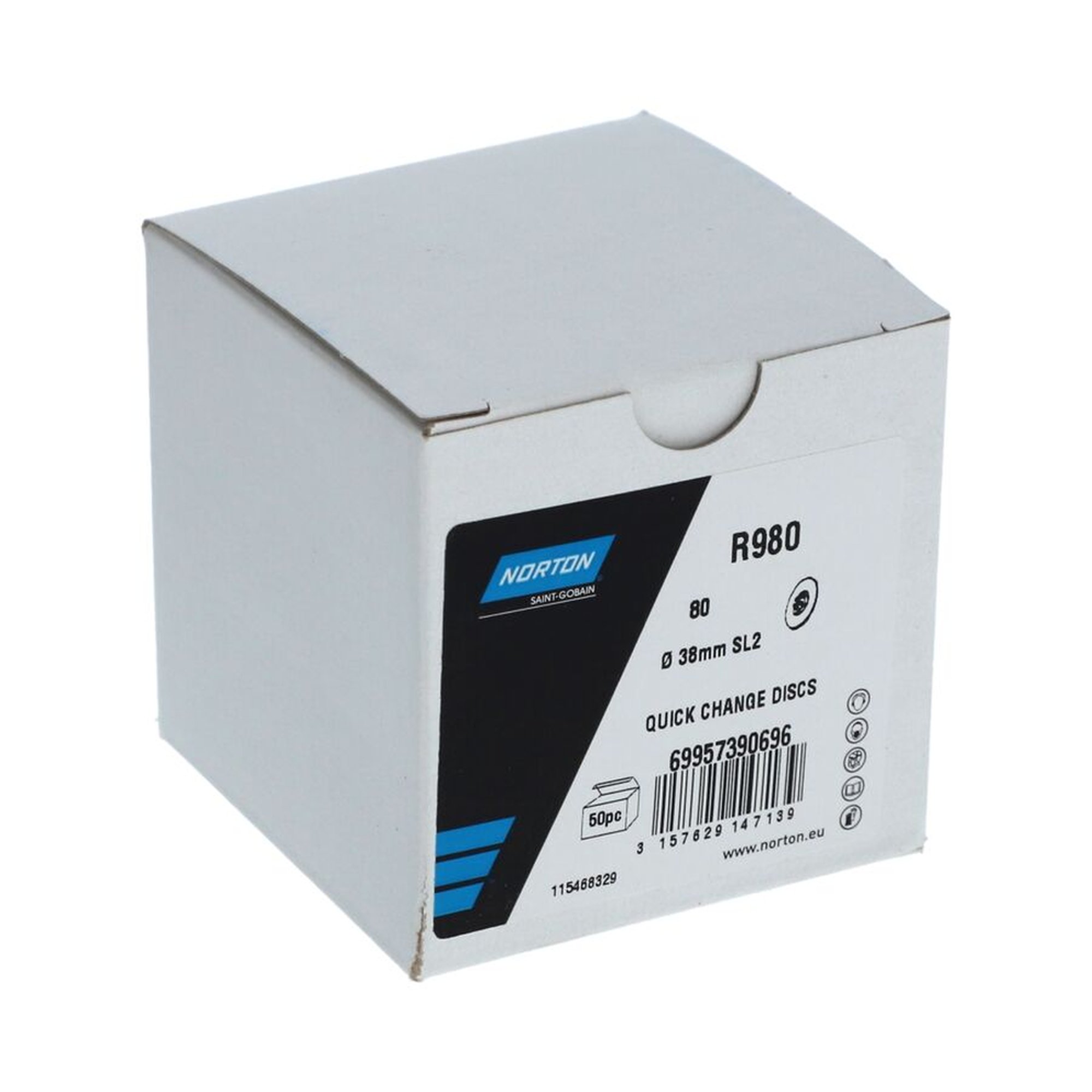 50 x Norton SpeedLok Schleifscheibe 38,1 mm R980P Korn80 Blaze für effizientes Schleifen