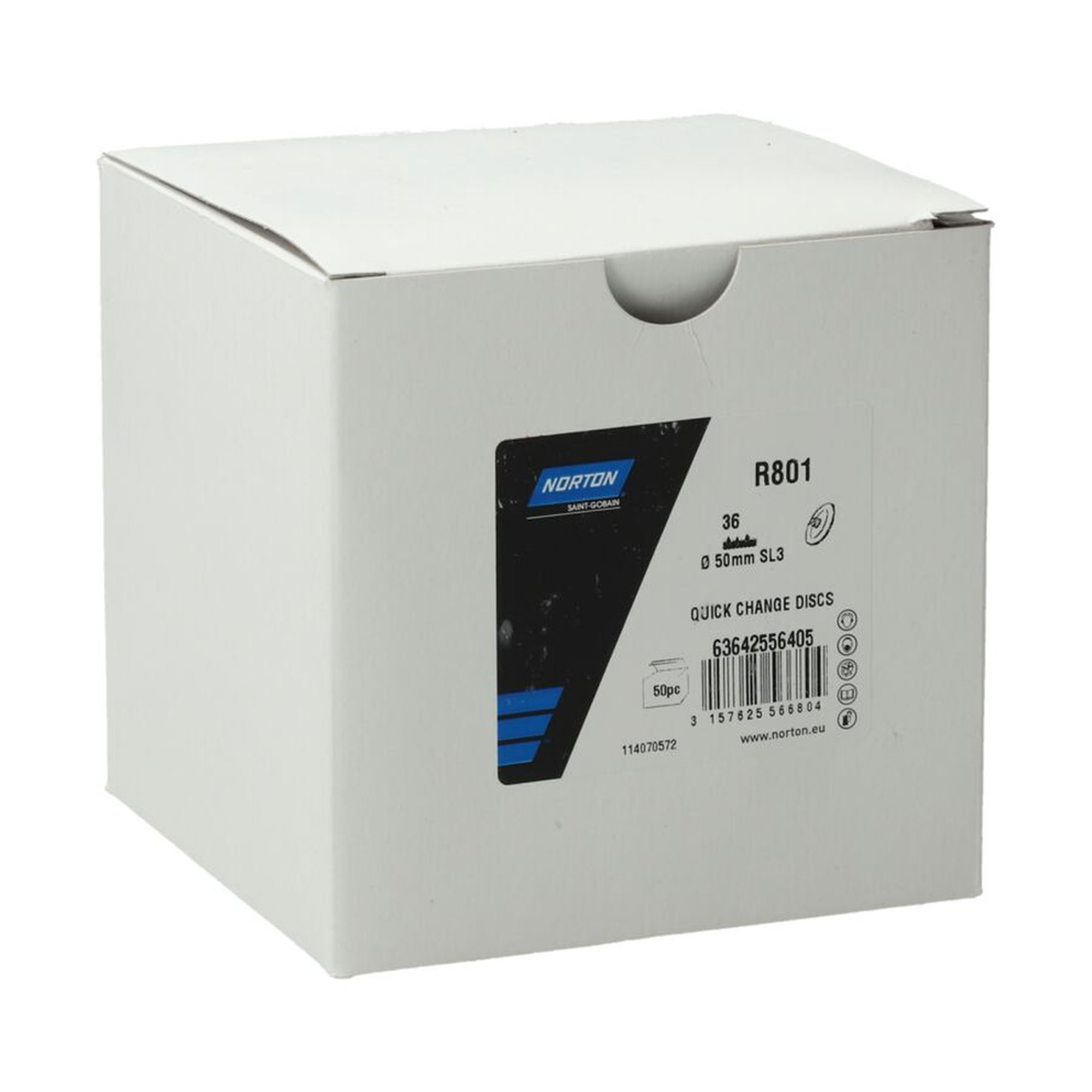 50 x Norton SpeedLok Schleifscheibe 50mm R801 Korn 36 X-Treme+ für effizientes Schleifen
