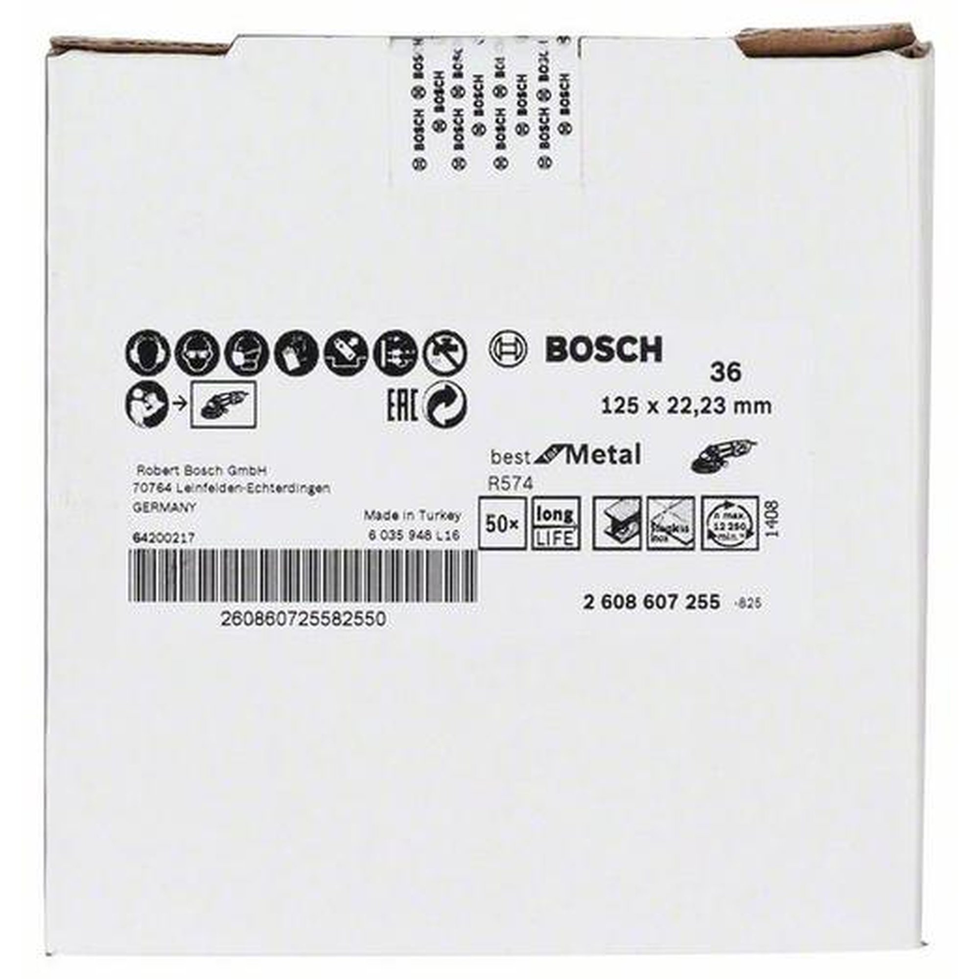 50x BOSCH Fiberschleifscheibe R574 Best für Metall, Zirkonkorund, Ø 125 mm, 22,23 mm, 36