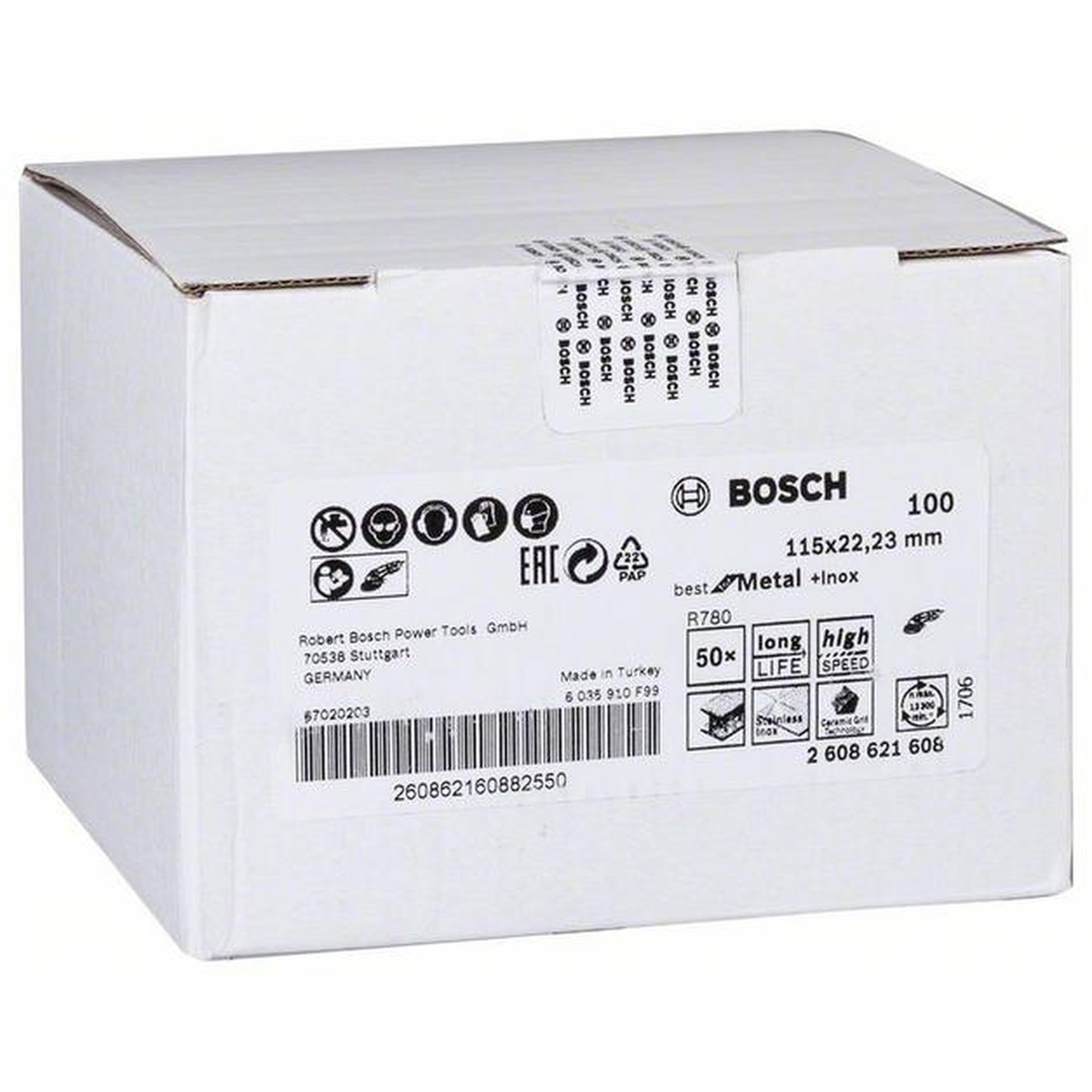50x BOSCH Fiberschleifscheibe R780 Best für Metall und Edelstahl, Ø 115 mm, 22,23 mm, 100