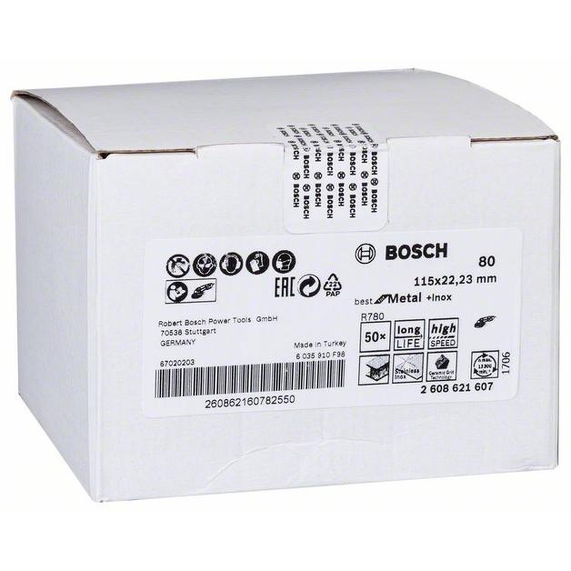 50x BOSCH Fiberschleifscheibe R780 Best für Metall und Edelstahl, Ø 115 mm, 22,23 mm, 80