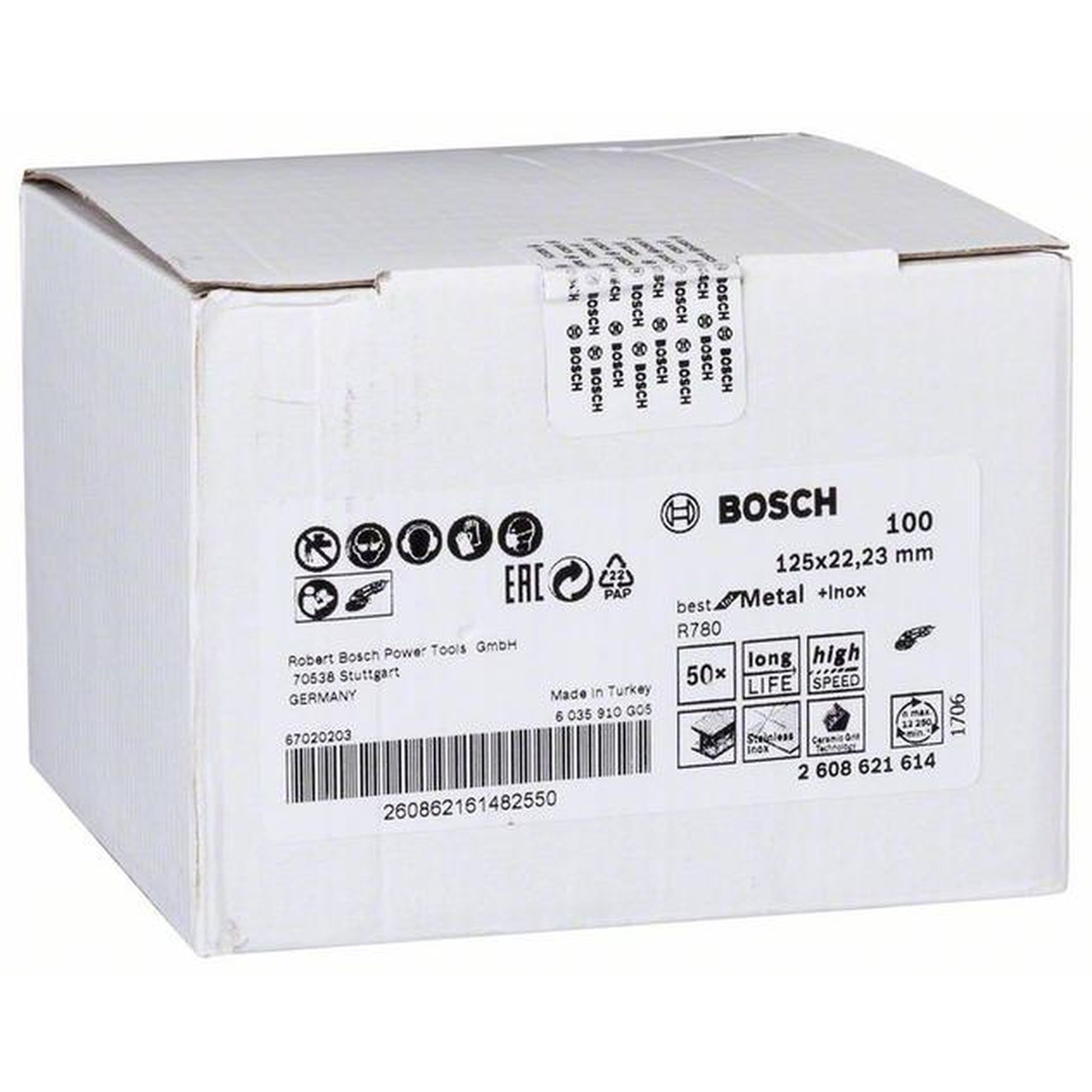50x BOSCH Fiberschleifscheibe R780 Best für Metall und Edelstahl, Ø 125 mm, 22,23 mm, 100