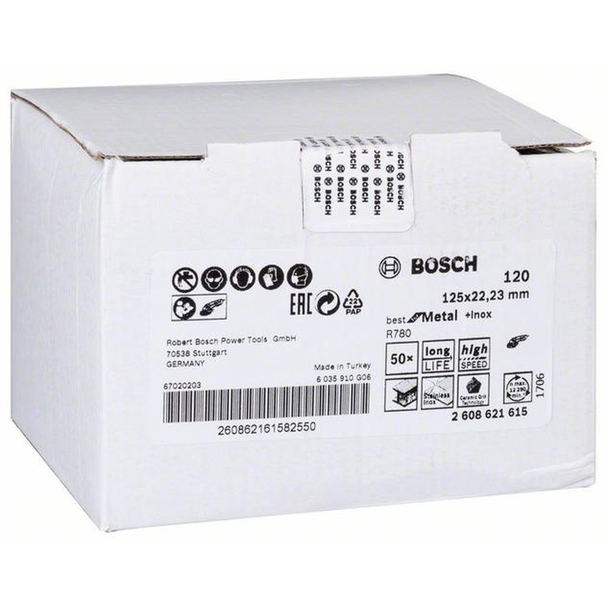 50x BOSCH Fiberschleifscheibe R780 Best für Metall und Edelstahl, Ø 125 mm, 22,23 mm, 120