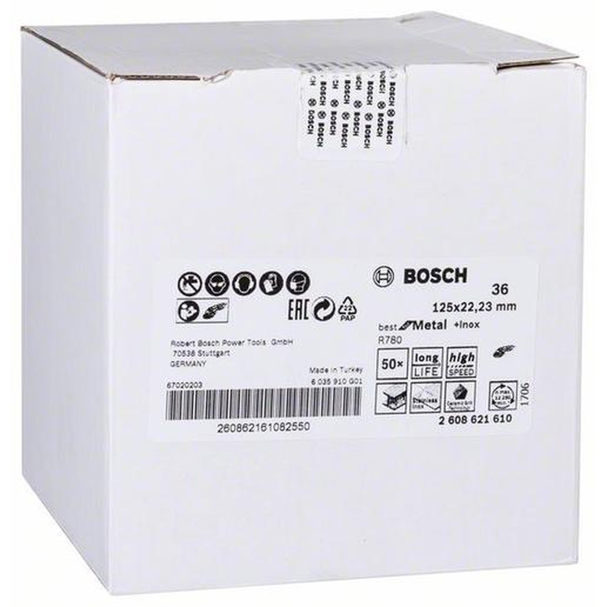 50x BOSCH Fiberschleifscheibe R780 Best für Metall und Edelstahl, Ø 125 mm, 22,23 mm, 36