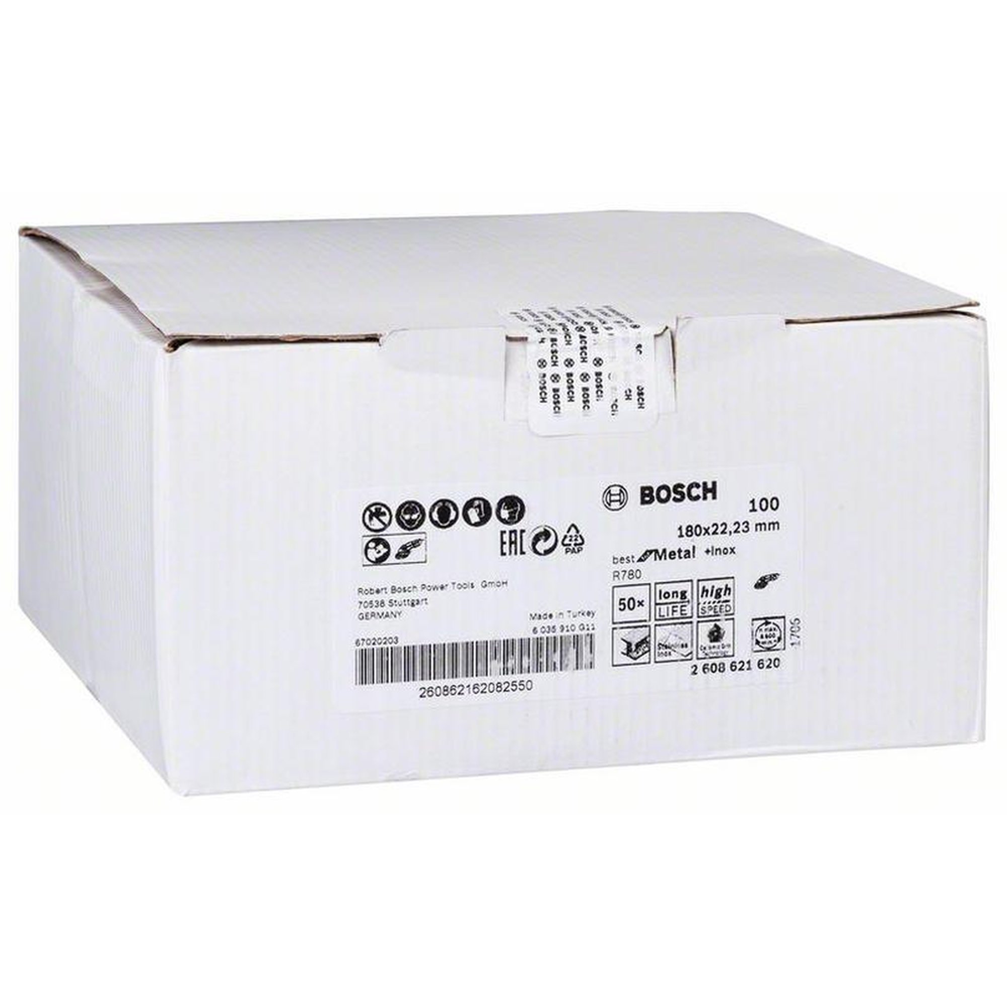50x BOSCH Fiberschleifscheibe R780 Best für Metall und Edelstahl, Ø 180 mm, 22,23 mm, 100