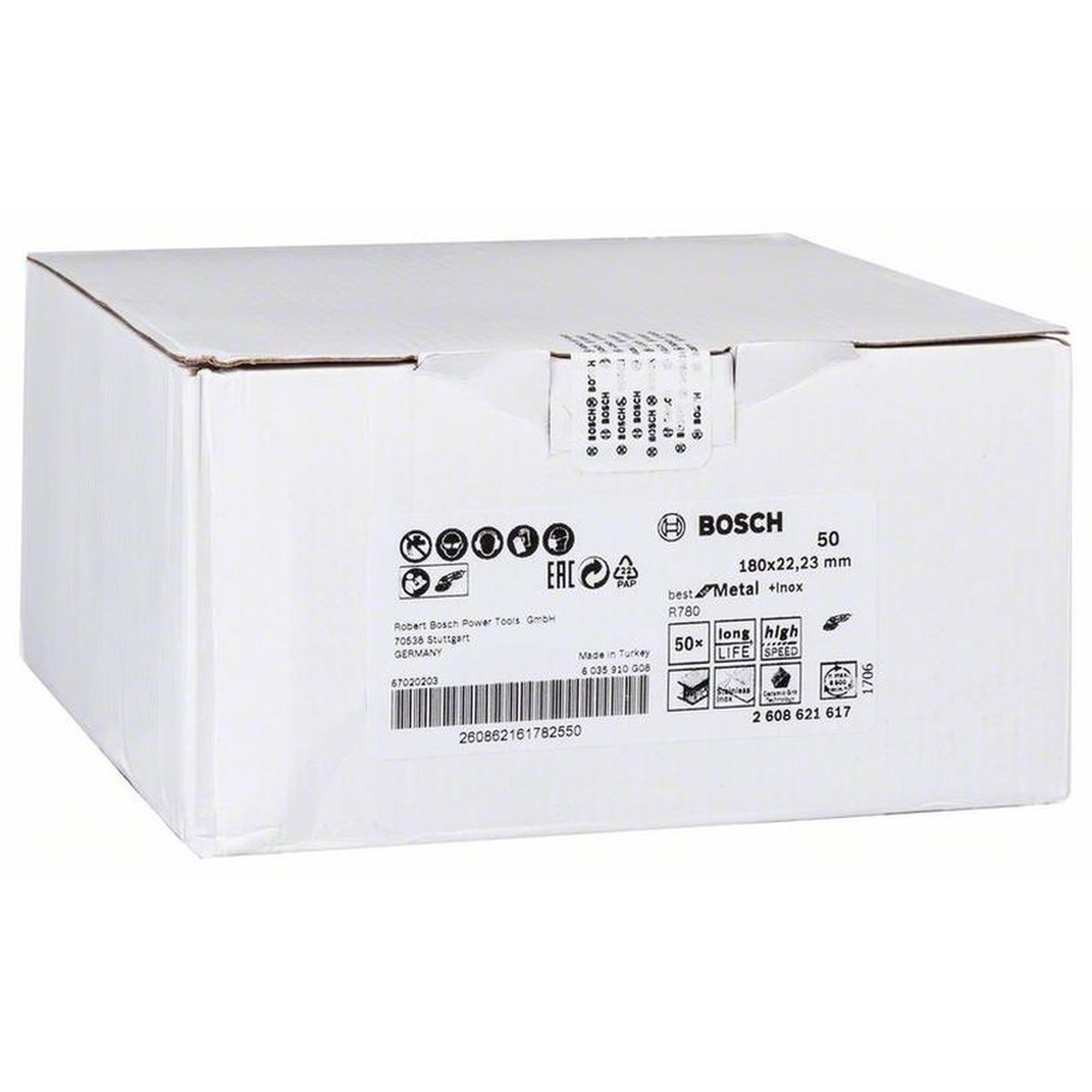 Besonderheiten: Die BOSCH Fiberschleifscheibe R780 Best for Metal + Inox bietet eine hohe Abtragsrate und eine konsistente Oberflächenqualität dank ihrer selbstnachschärfenden Keramik-Korn-Technologie