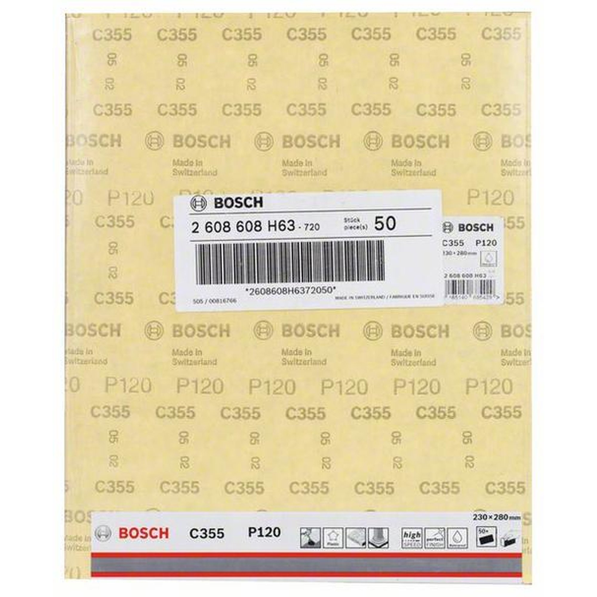 50x BOSCH Schleifblatt C355, Lack- oder Verbundmaterialflächen, 230 x 280 mm, 120