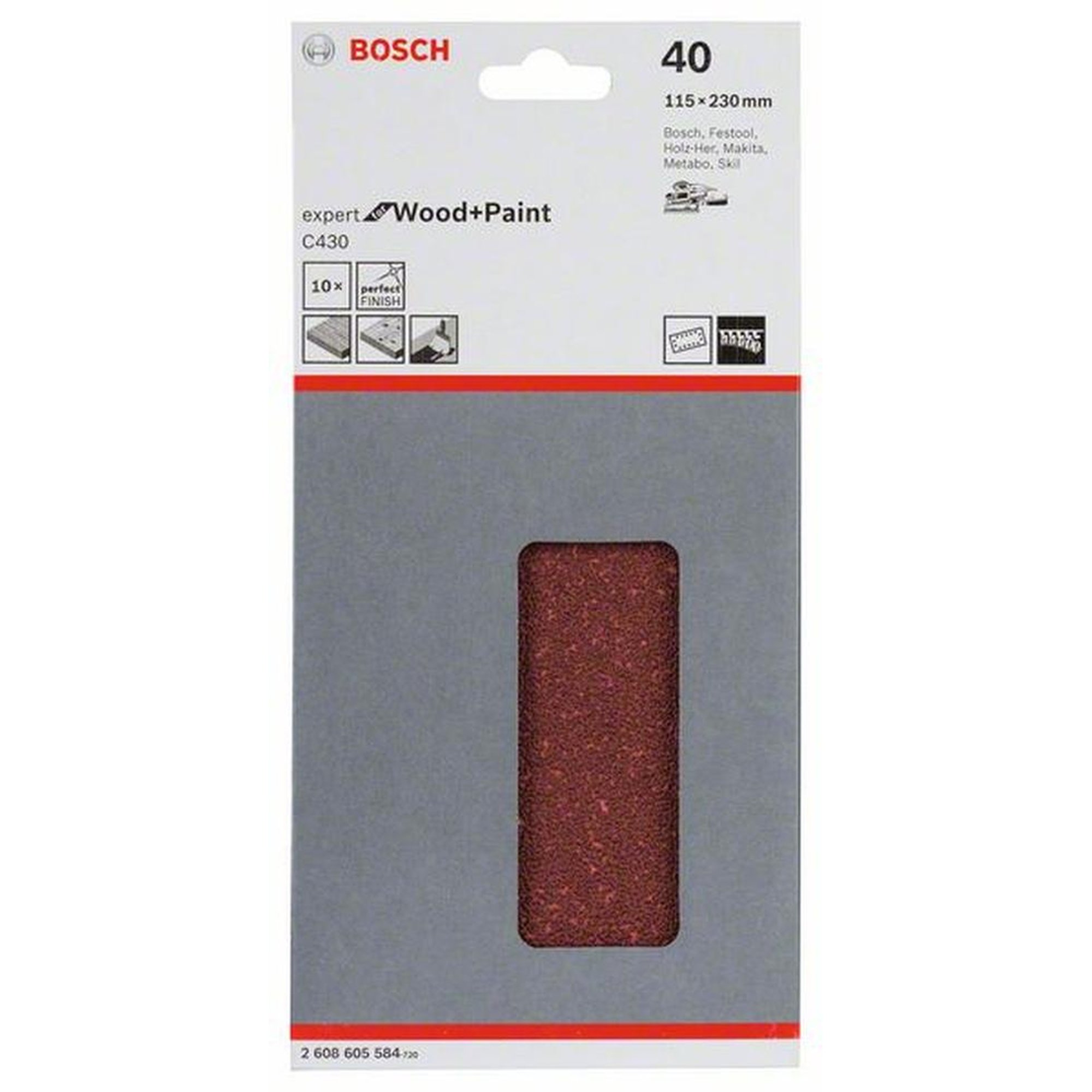 50x BOSCH Schleifblatt C430 für Holz und Farbe, 115 x 230 mm, 40, 14 Löcher