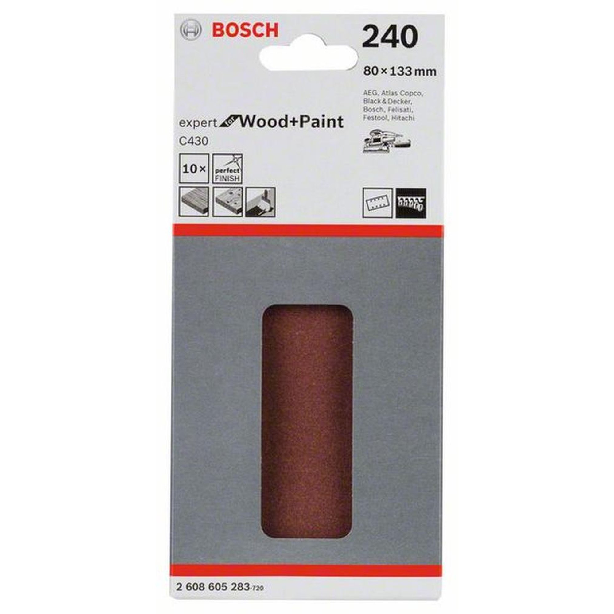 50x BOSCH Schleifblatt C430 für Holz und Farbe, 80 x 133 mm, 240, 8 Löcher, Klett