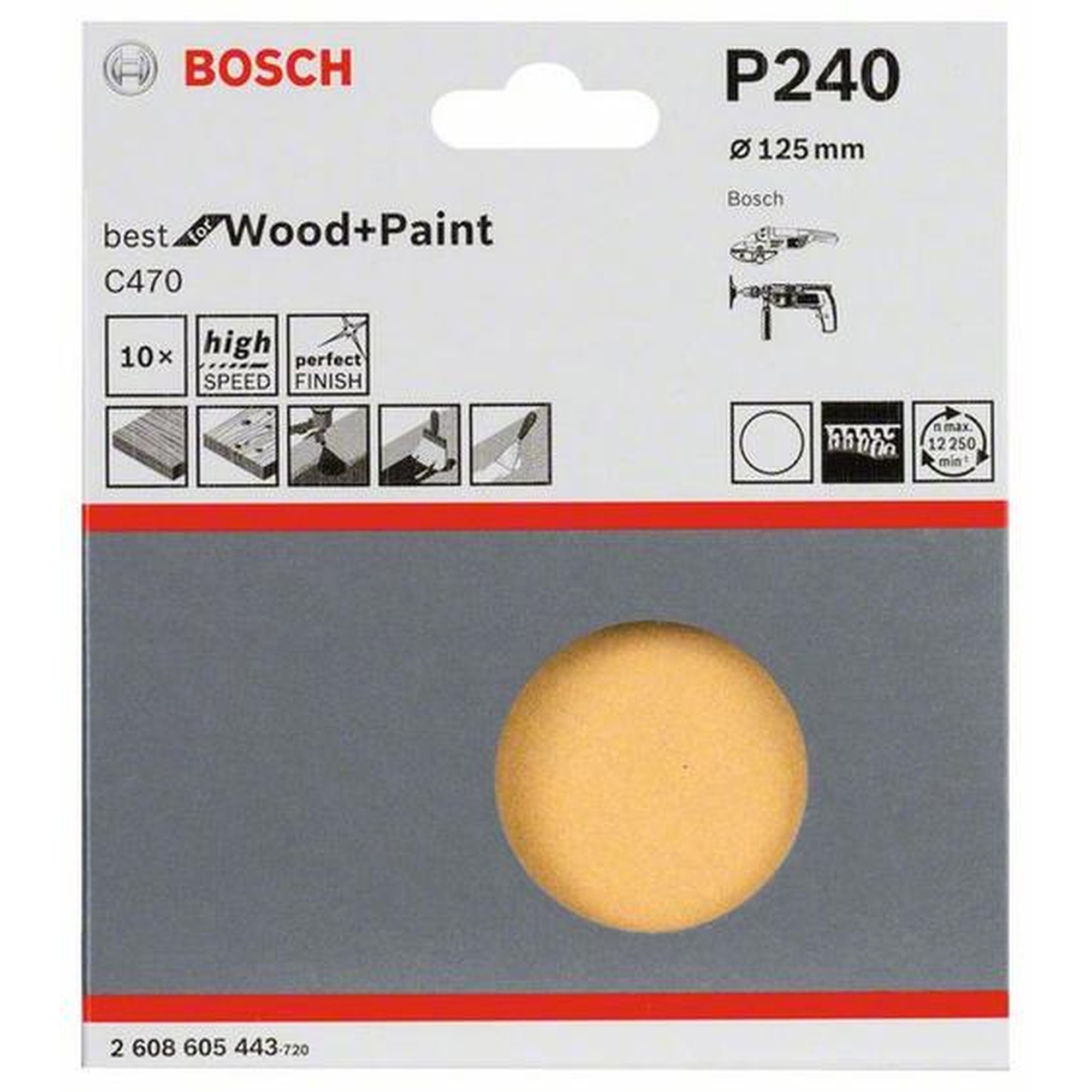 50x BOSCH Schleifblatt C470 für Holz und Farbe, 125 mm, 240, ungelocht, Klett