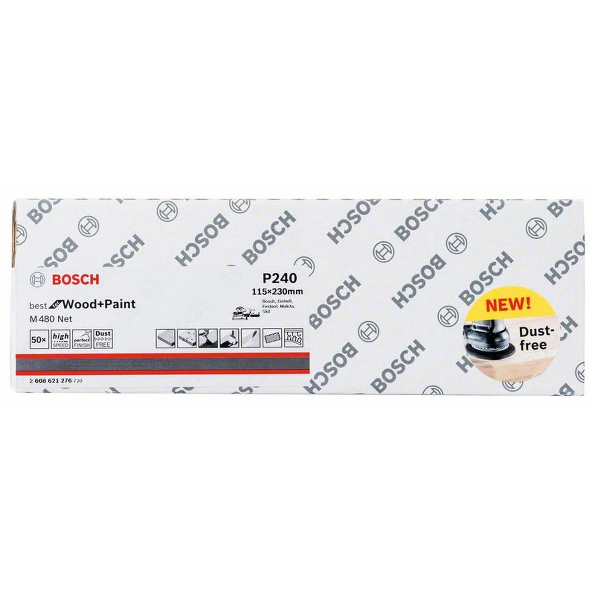 50x BOSCH Schleifblatt M480 Net, Best für Holz und Farbe, 115 x 230 mm, 240