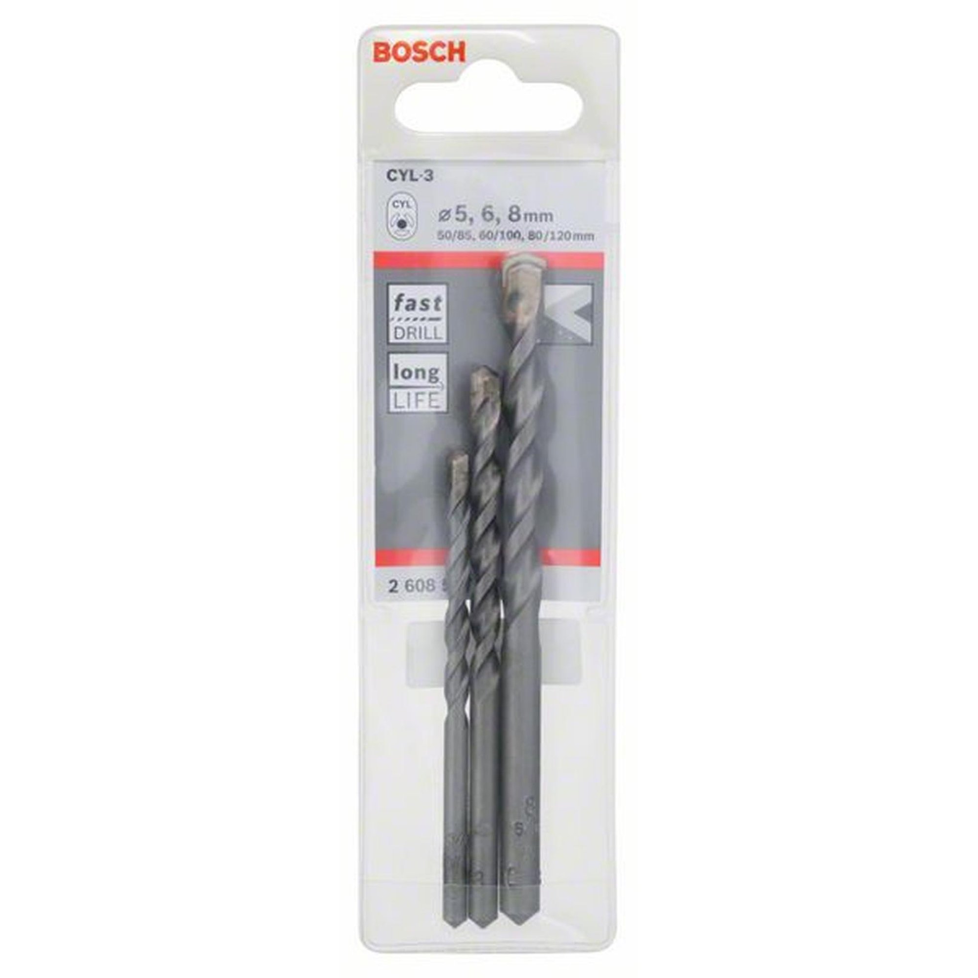 Das Bosch Professional Betonbohrer CYL-3 Set ist ein hochwertiges und langlebiges Werkzeug für das Bohren von Beton. Es besteht aus drei Bohrern mit den Durchmessern 5,0 mm, 6,0 mm und 8,0 mm. Jeder Bohrer hat eine Arbeitslänge von 50 mm, 60 mm bzw. 80 mm und eine Gesamtlänge von 85 mm, 100 mm bzw. 120 mm.
