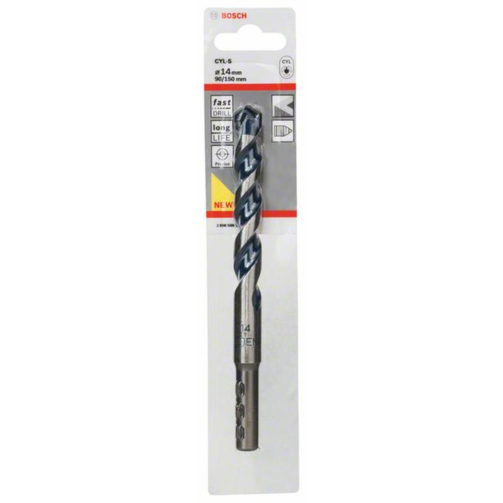 Der Bosch Professional Betonbohrer CYL-5 hat einen Durchmesser von 14,00 mm, eine Arbeitslänge von 90 mm und eine Gesamtlänge von 150 mm. Mit seiner hohen Lebensdauer, Verschleißfestigkeit und Präzision ist er die ideale Wahl für professionelle Handwerker und Heimwerker.