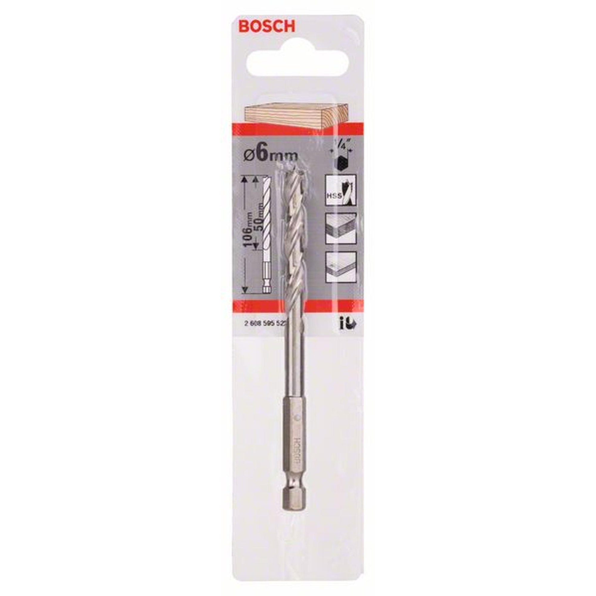 5x Bosch Professional Holzspiralbohrer mit 1/4 Zoll-Sechskantschaft, Ø 6 x 63 mm