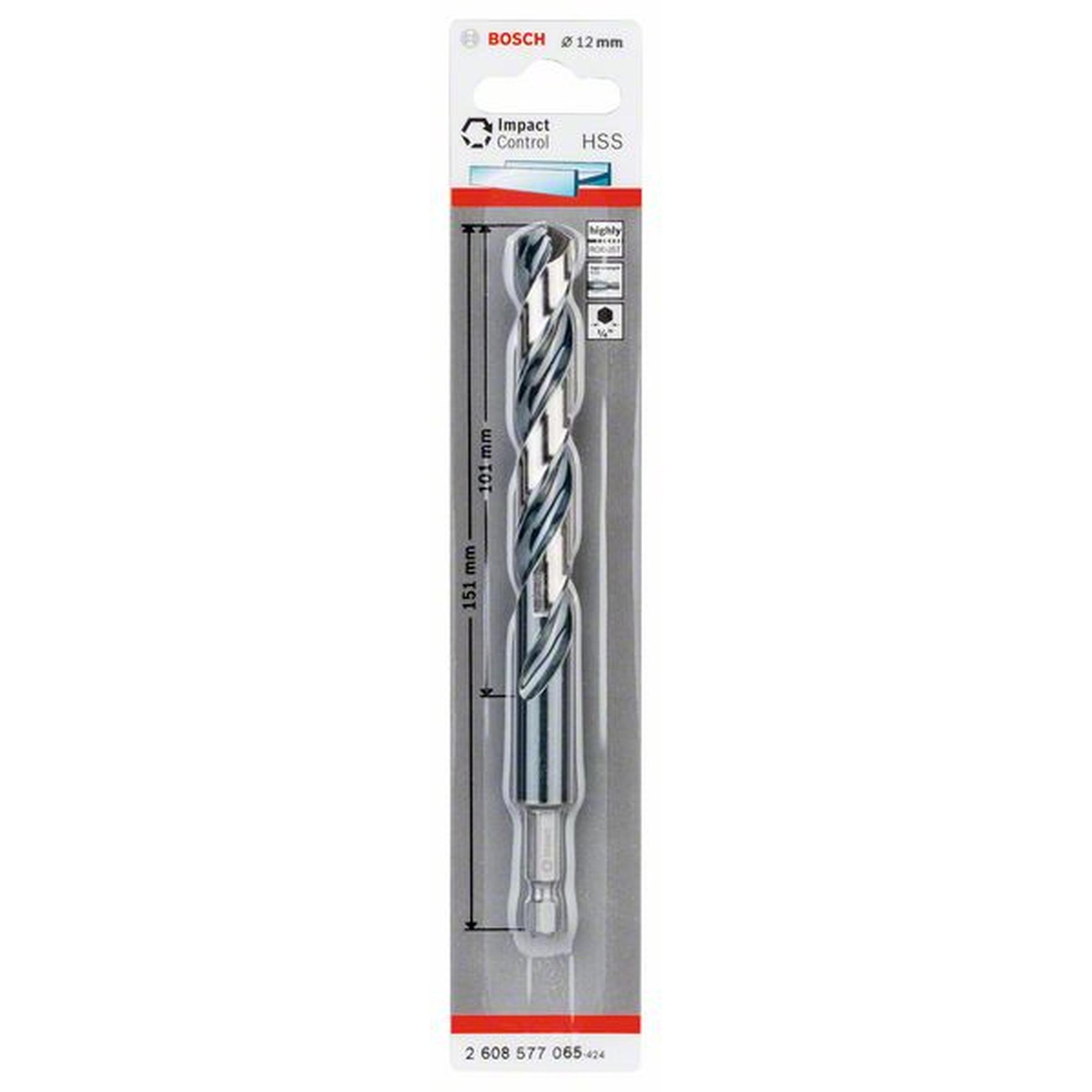 5x Bosch Professional HSS Spiralbohrer Impact Control mit Sechskantschaft, Ø 12 x 101 mm