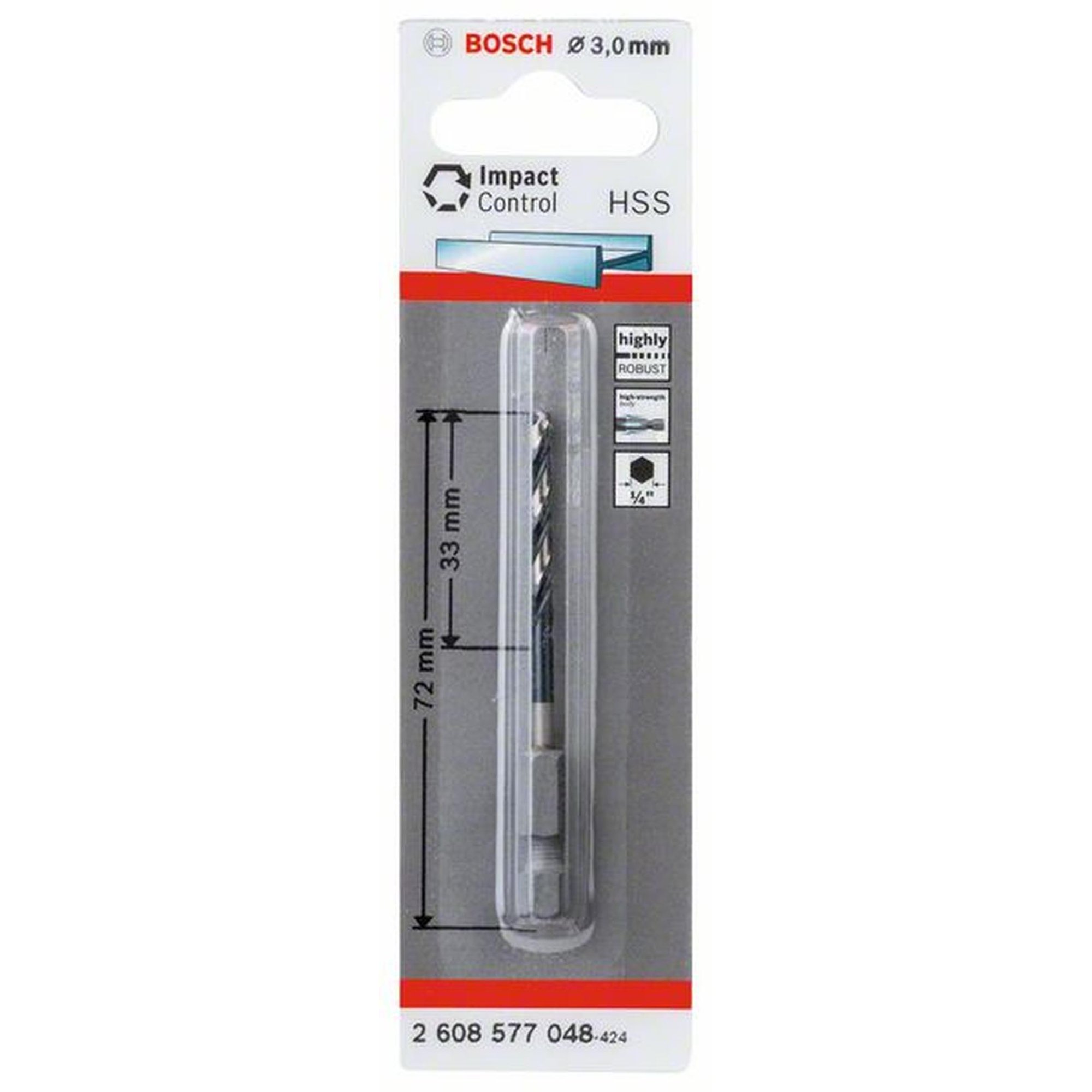 5x Bosch Professional HSS Spiralbohrer Impact Control mit Sechskantschaft, Ø 3 x 33 mm