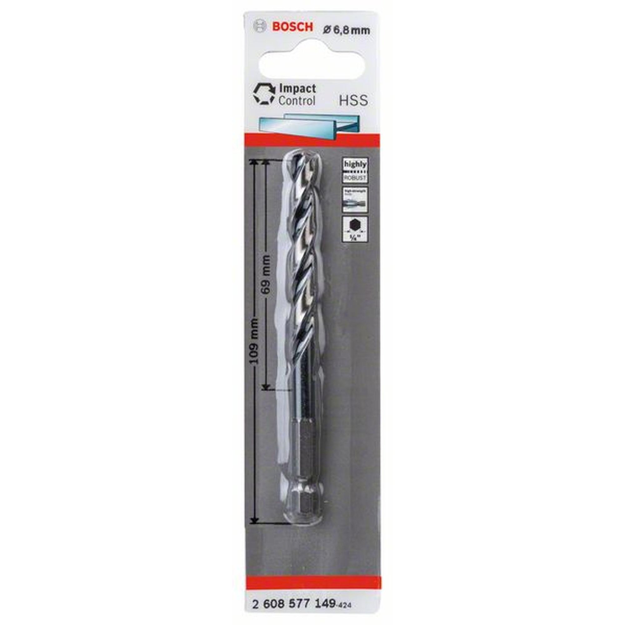 5x Bosch Professional HSS Spiralbohrer Impact Control mit Sechskantschaft, Ø 6,8 x 69 mm