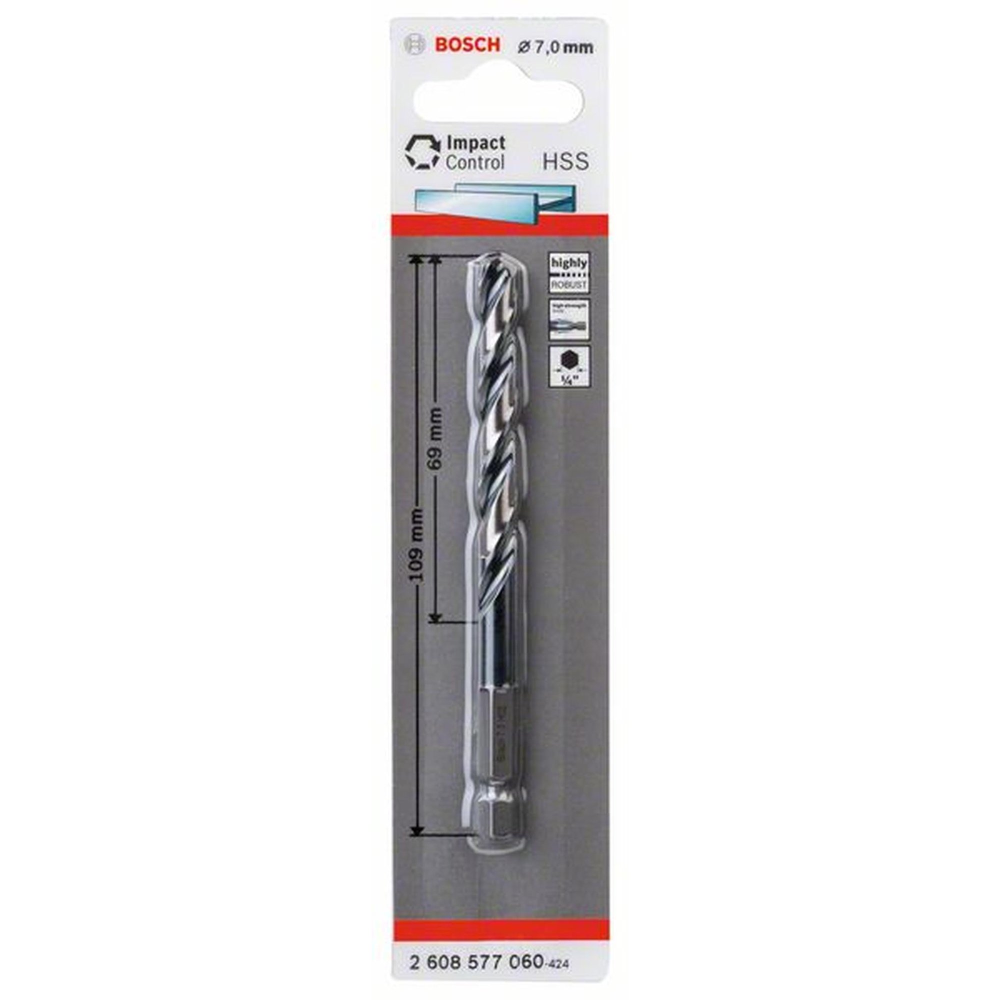 5x Bosch Professional HSS Spiralbohrer Impact Control mit Sechskantschaft, Ø 7 x 69 mm