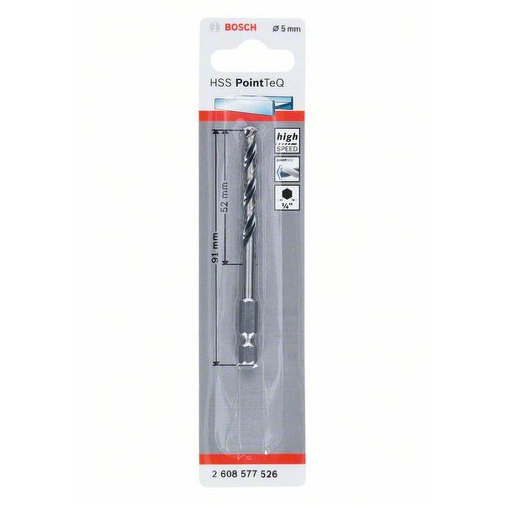 5x Bosch Professional HSS-Spiralbohrer PointTeQ mit , Ø 5,0 x 52 mm