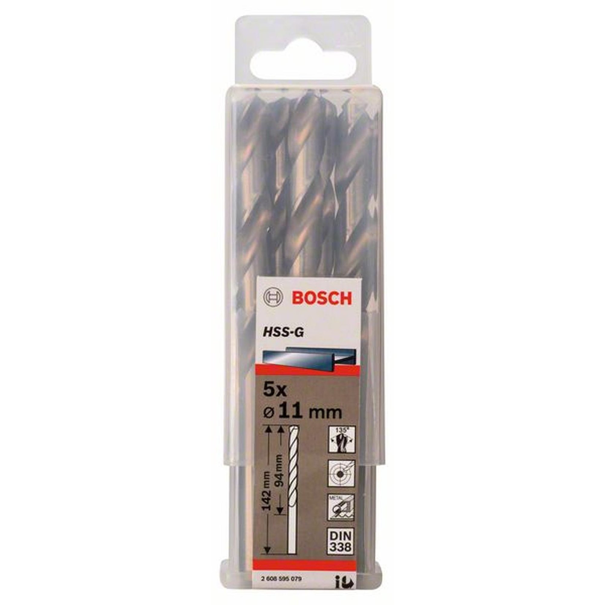 5x Bosch Professional Metallbohrer HSS-G, DIN 338, Ø 11 x 94 mm