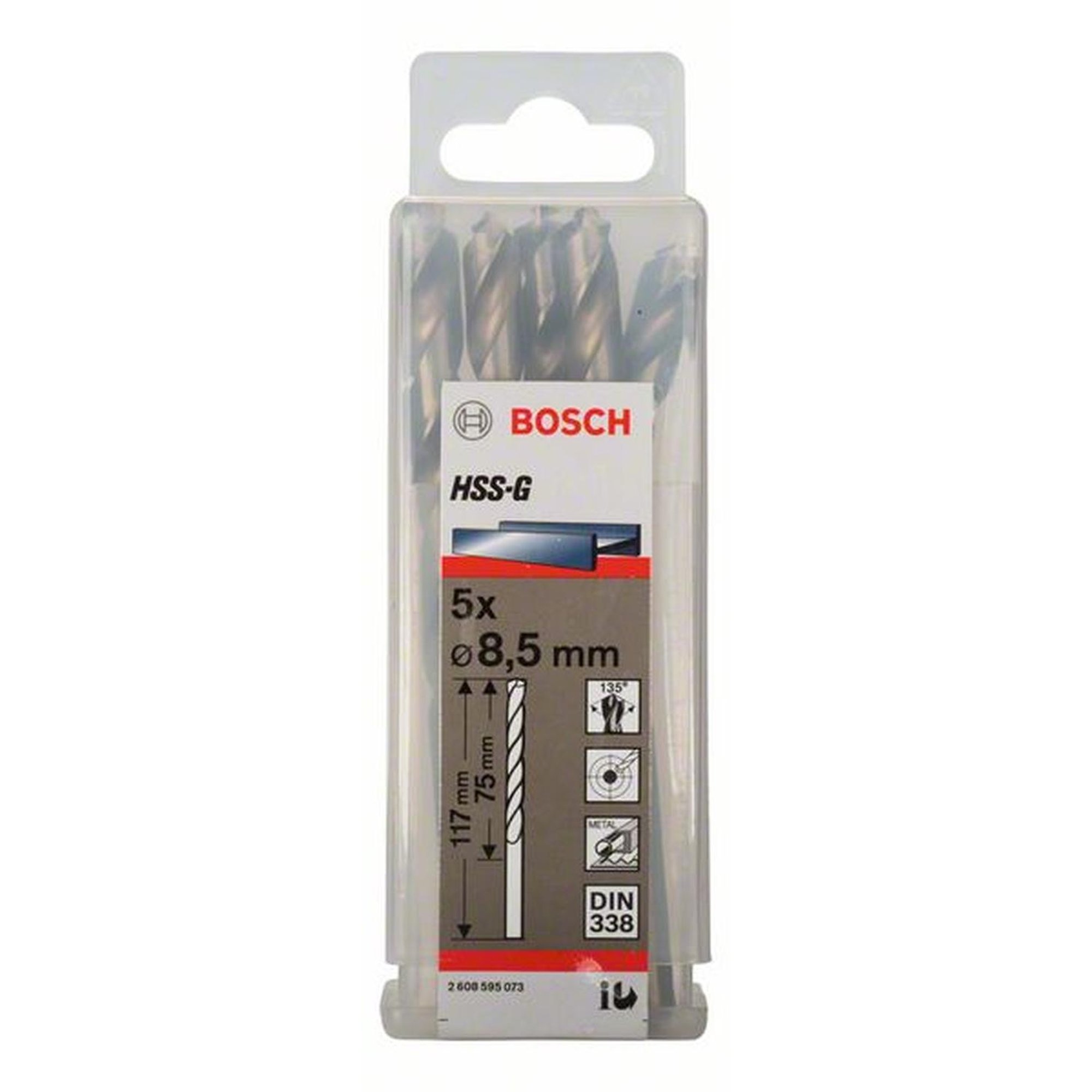 5x Bosch Professional Metallbohrer HSS-G, DIN 338, Ø 8,5 x 75 mm