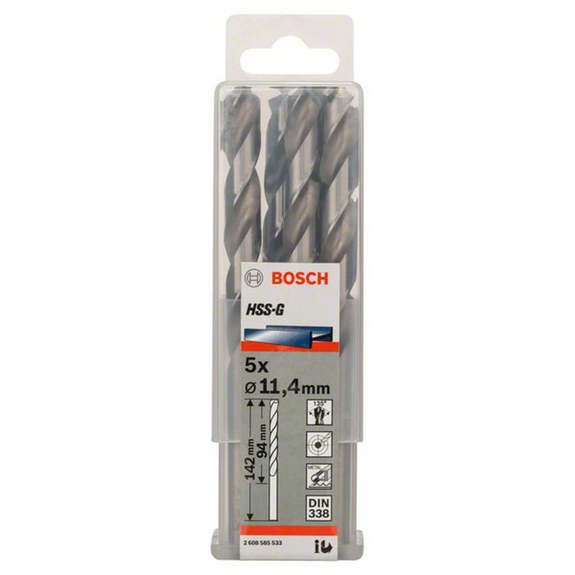 5x Bosch Professional Metallbohrer HSS-G, DIN , Ø 11,4 x 94 mm
