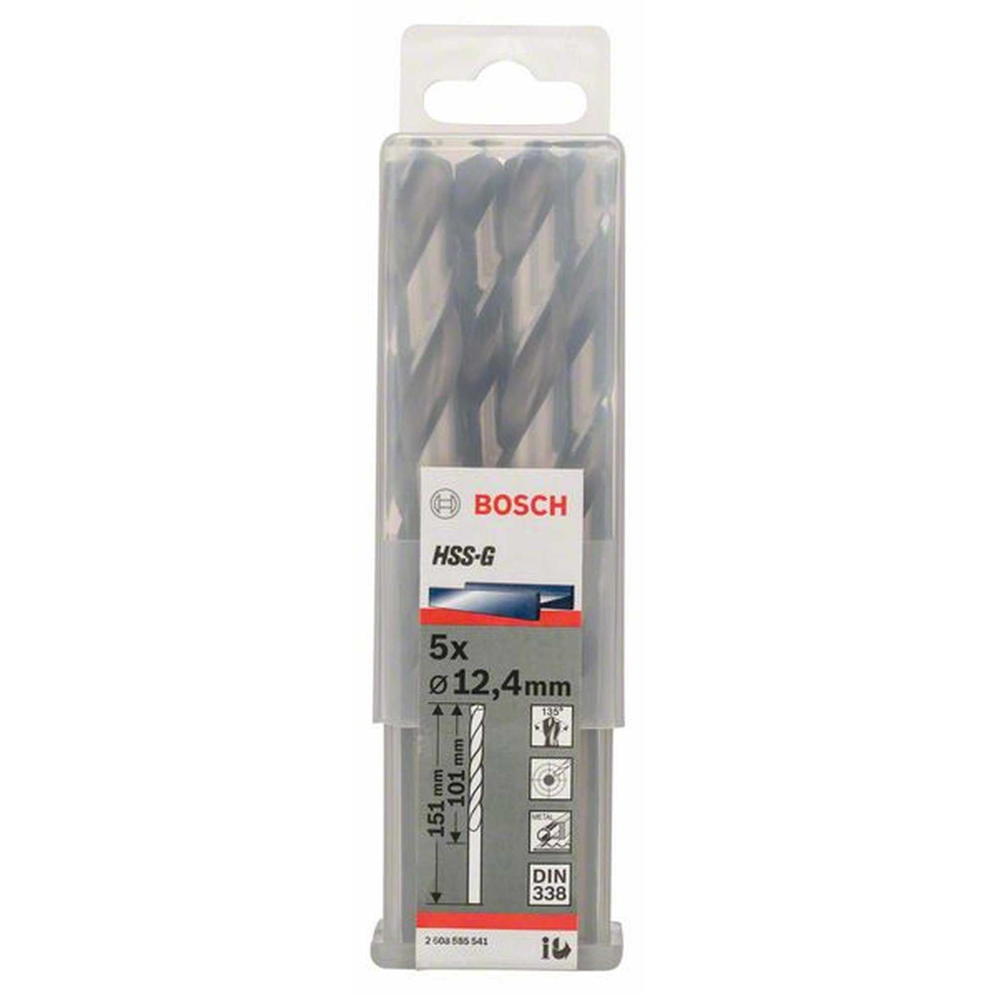 5x Bosch Professional Metallbohrer HSS-G, DIN , Ø 12,4 x 101 mm