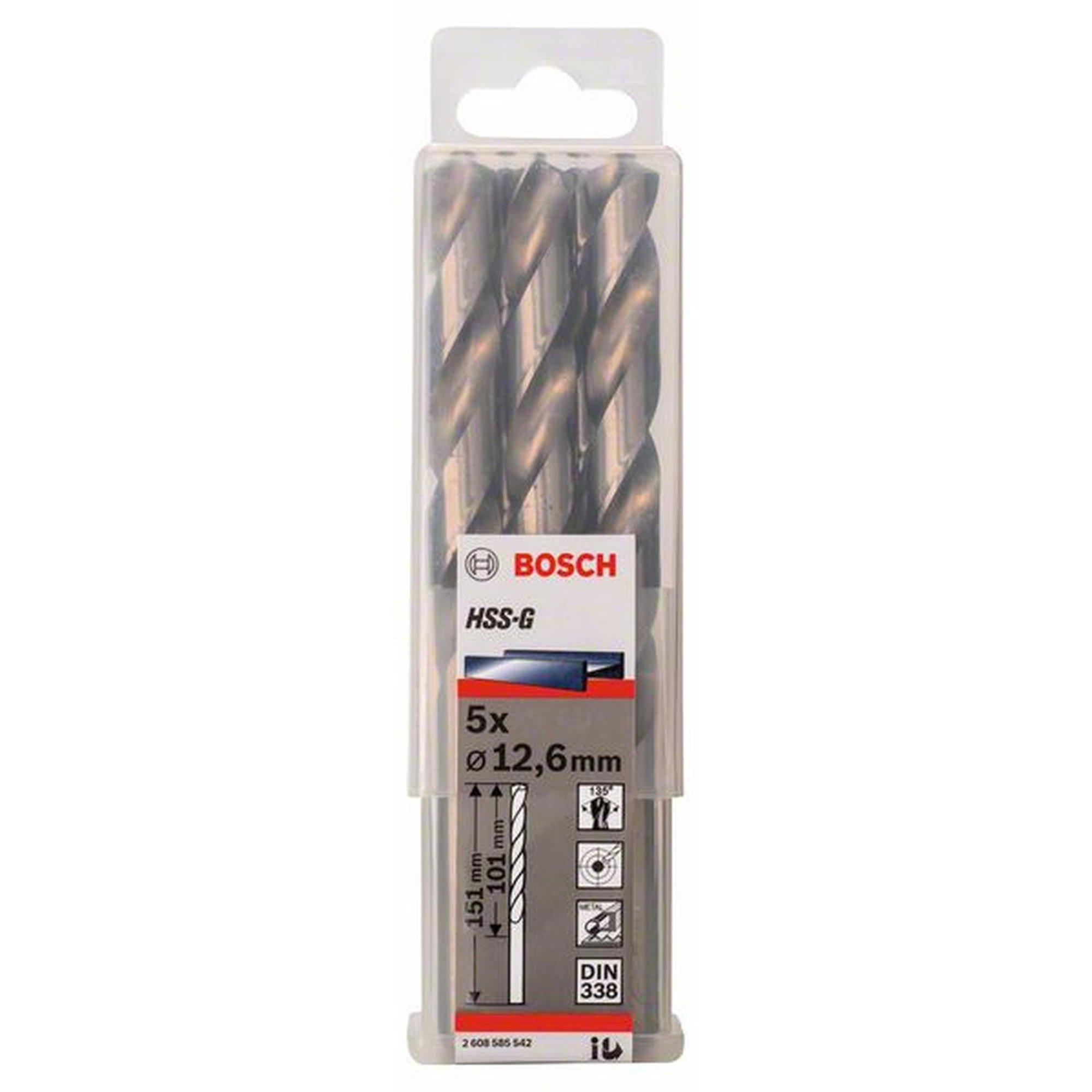 5x Bosch Professional Metallbohrer HSS-G, DIN , Ø 12,6 x 101 mm