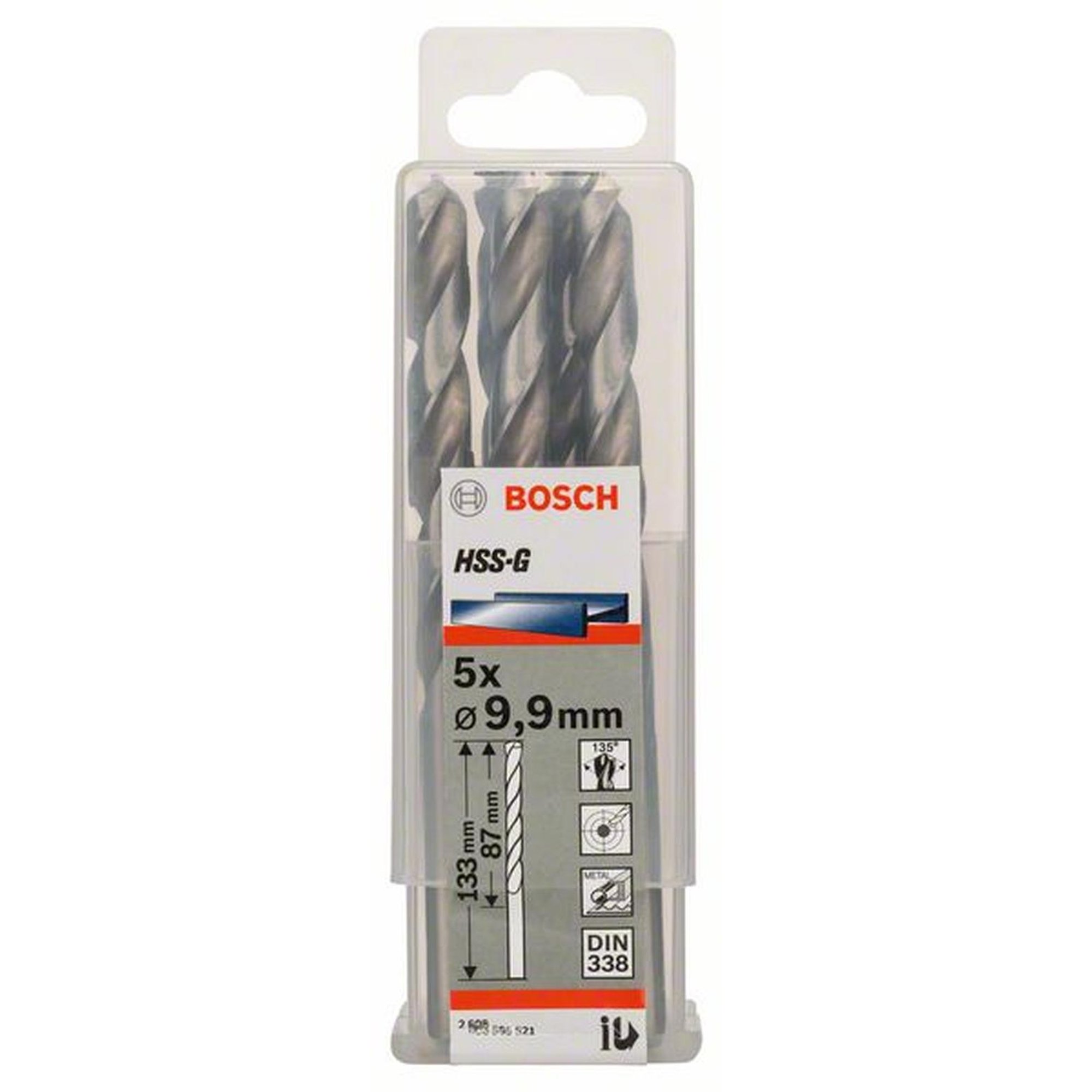5x Bosch Professional Metallbohrer HSS-G, DIN , Ø 9,9 x 87 mm