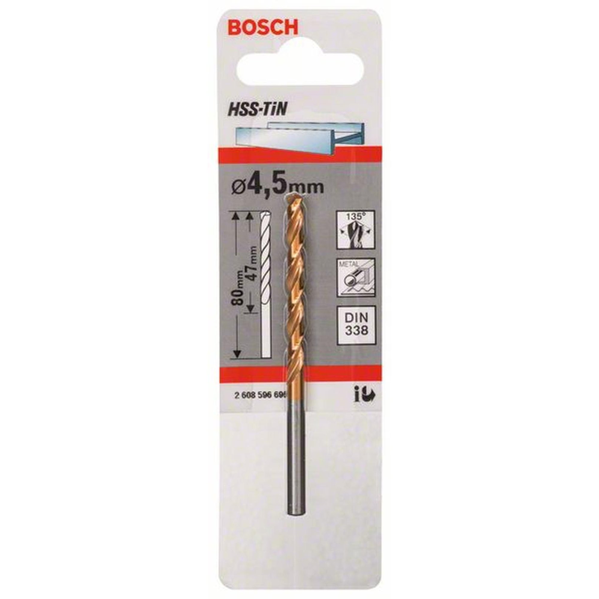 5x Bosch Professional Metallbohrer HSS-TiN, DIN 338, Ø 4,5 x 47 mm